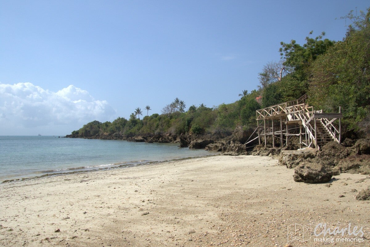 Vijfde en laatste stop was Kwale Island. Dat zou best een mooi eiland kunnen zijn met zijn tropische begroeiing en witte stranden, ware het niet dat het helemaal was volgebouwd met souvenirshops en restaurants. Iedere touroperator heeft zijn eigen gebouwde overkapping waar gasten kunnen zitten en waar het eten wordt bereid. De 'fresh seafood lunch' werd daar geserveerd. Smaakte prima met een gevarieerd aanbod aan eten. Daarna was het wachten tot iedereen klaar was en het personeel ook alles had opgeruimd. Gelukkig vonden we twee bedjes onder een parasol, het souvenir shoppen lieten we maar aan anderen over.