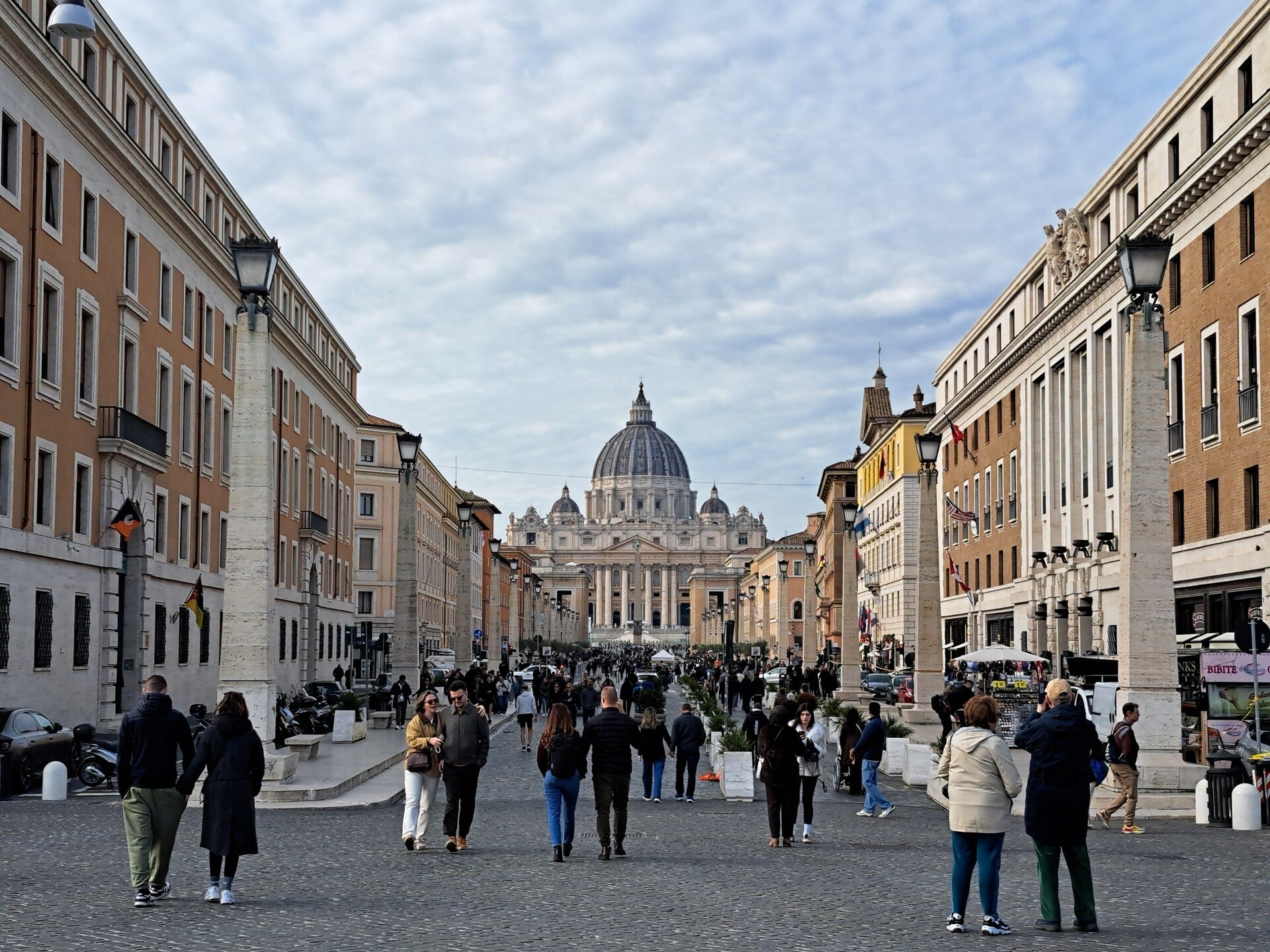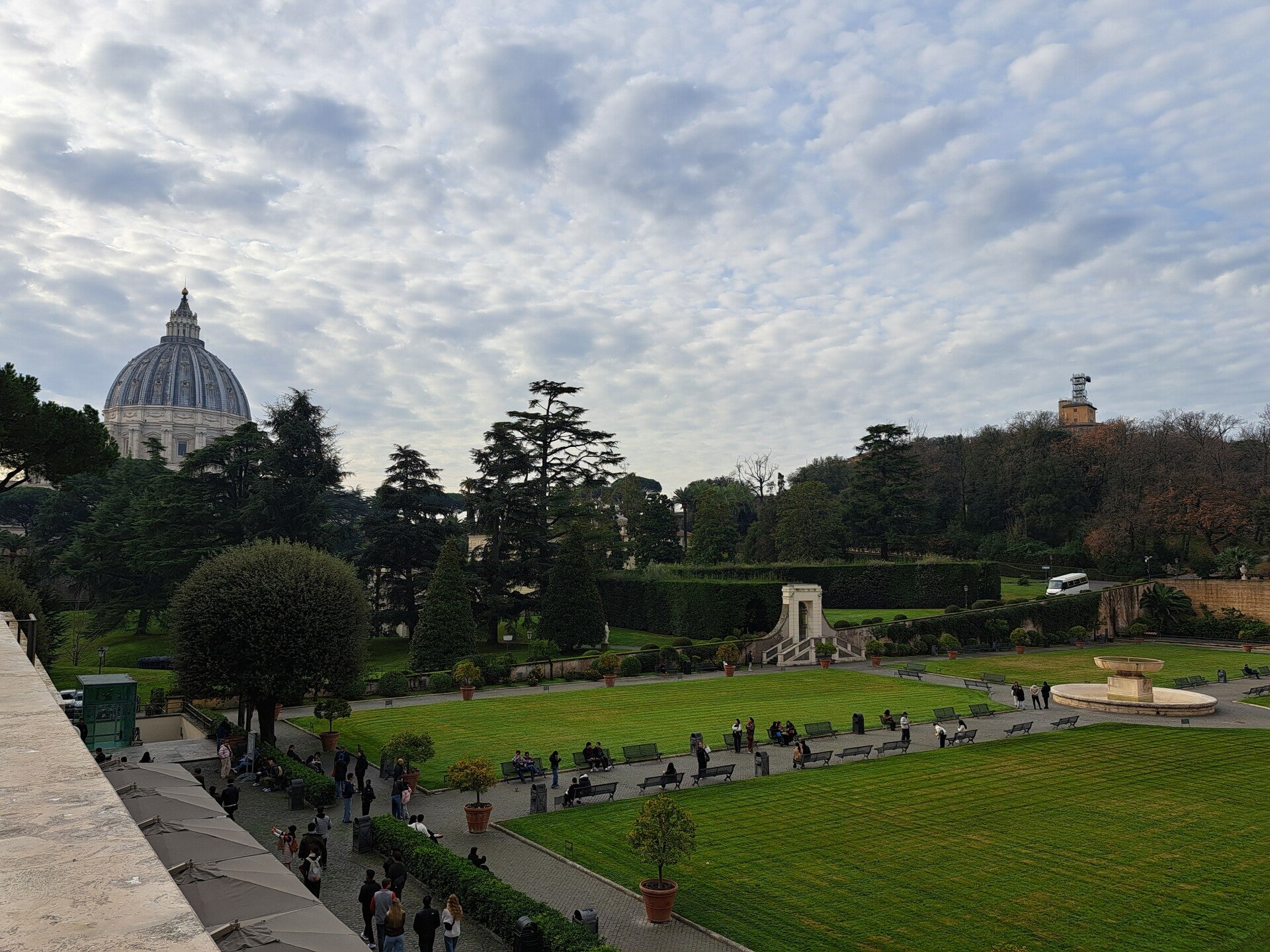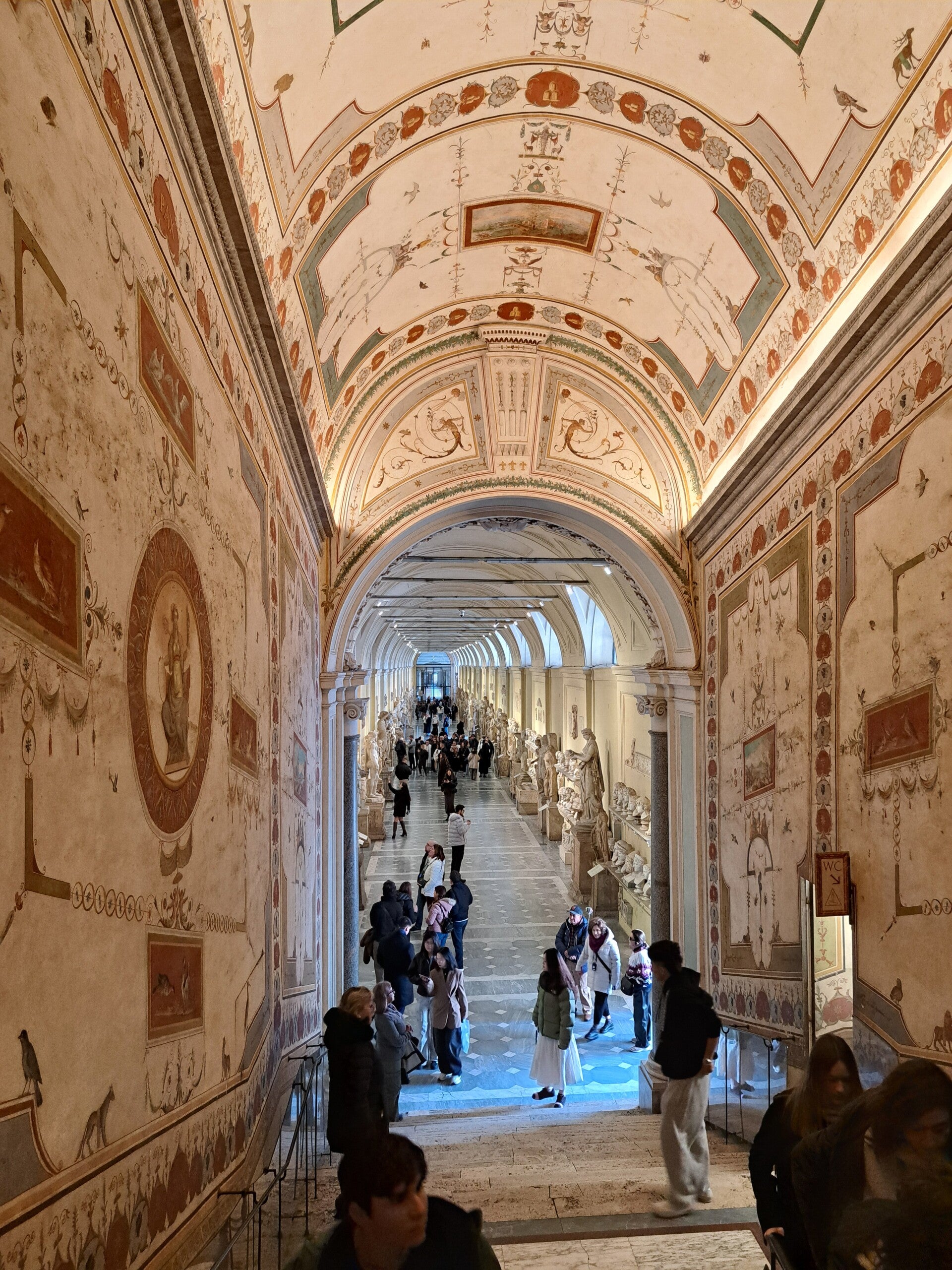 Bij het verlaten van de kapel zou je volgens de verhalen twee opties hebben: een uitgang richting de Sint Pieter basiliek en een uitgang verder het museum door. We wilden voor de eerste gaan, maar in de drukte kwamen we toch op de verkeerde uitgang uit. Voordeel is dat je ook het laatste deel van het museum ziet. Nadeel is alleen dat je helemaal om moet lopen naar het Sint Pietersplein om de basiliek te bezoeken én dat je daar in de rij moet. En die bleek absoluut niet mals, dus dat hebben we maar geskipt. Uiteraard wel het plein en de basiliek gezien, al voelt het wel een beetje als een soort multimediaterrein. Overal grote schermen en speakers, verder veel hekken om de menigte een beetje te doseren en sturen. Op het plein ook overal vrachtwagens om weer iets op- of af te bouwen. Als je om dit soort dingen heen kan kijken, is de Sint Pieter en het plein overigens wel erg mooi.