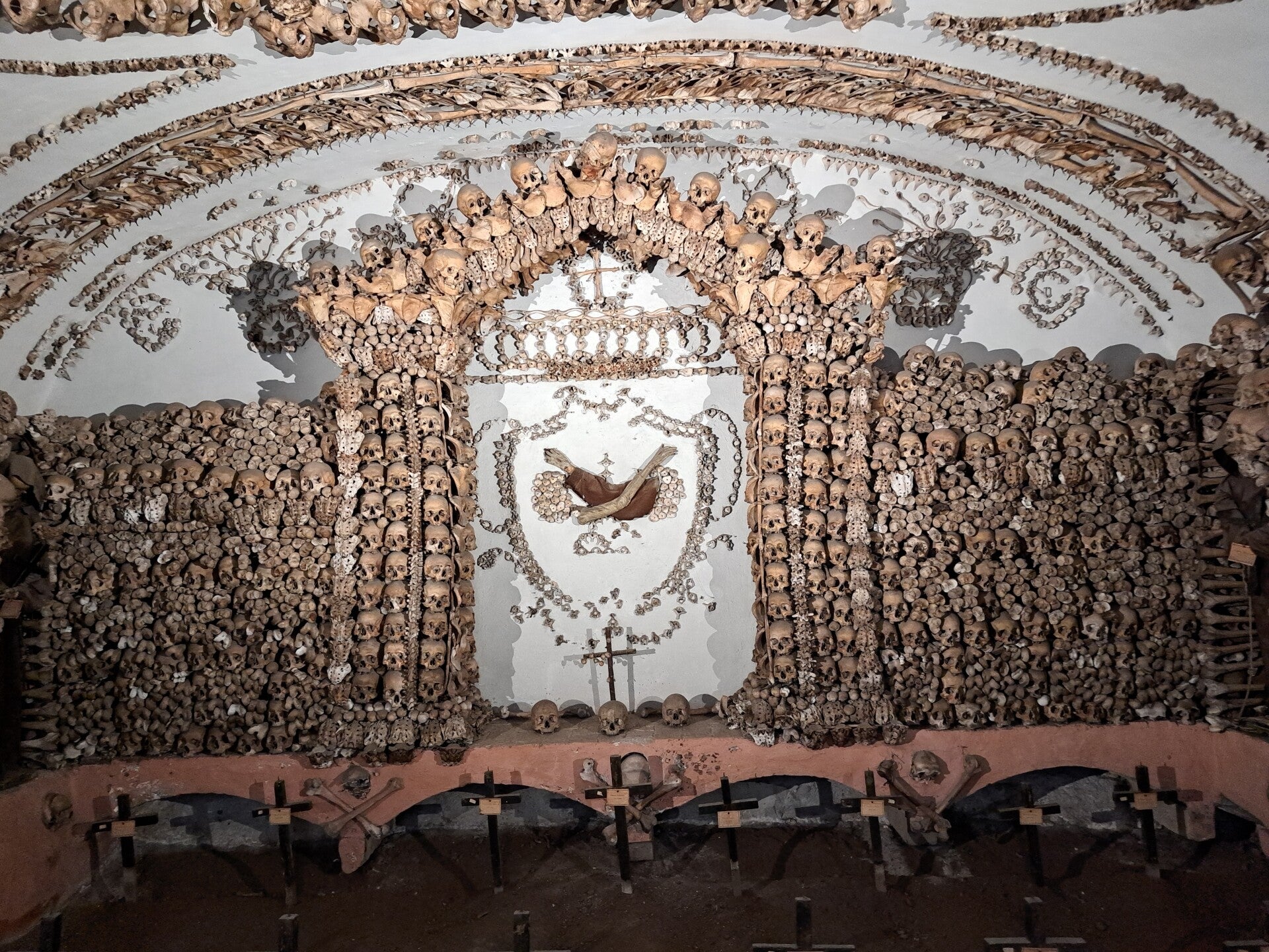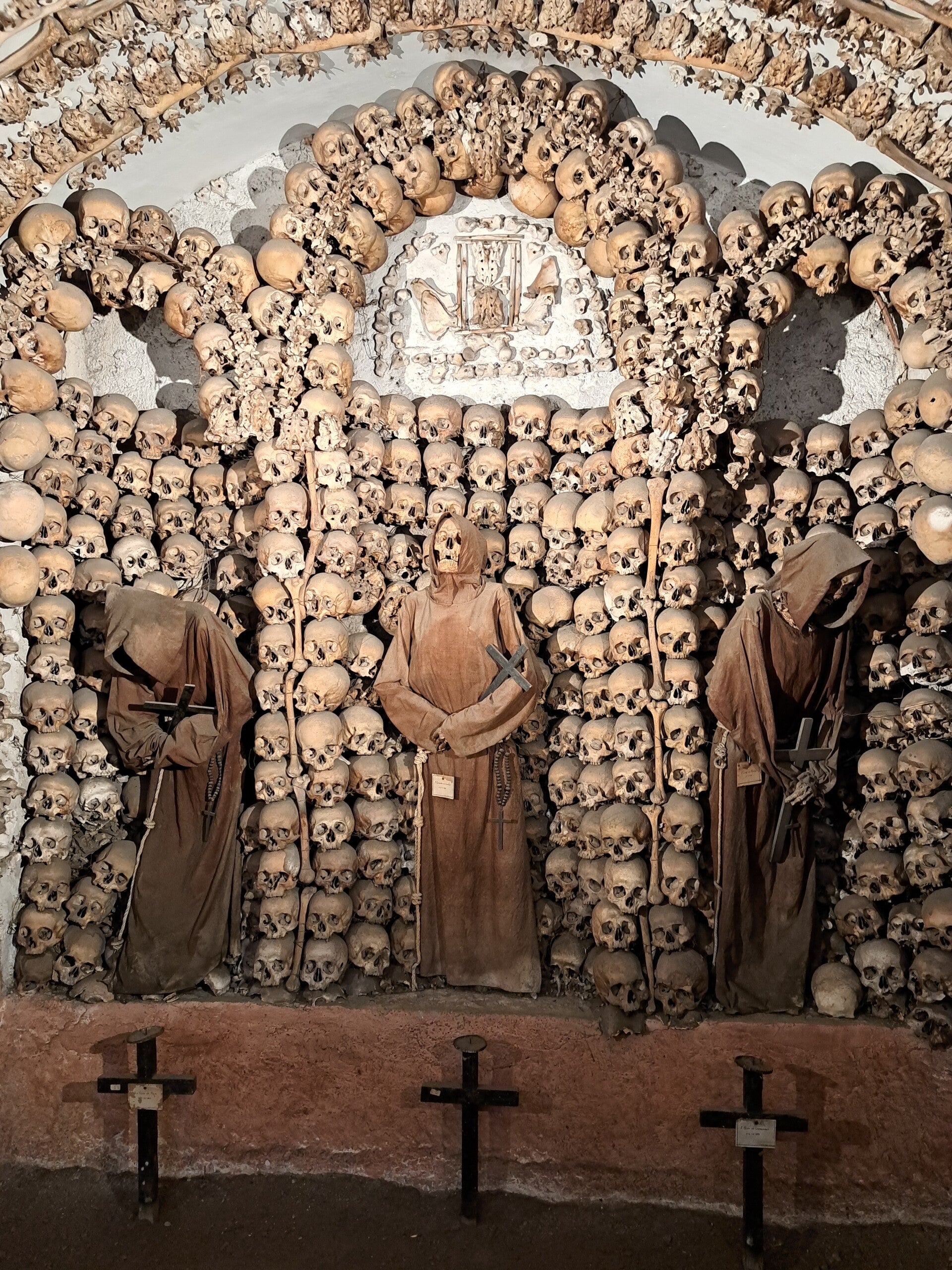 Startpunt van de wandeling was vlak bij het grote treinstation van Rome: Termini. Vlak daarbij ligt het Piazza della Repubblica, een soort megarotonde met in het midden een grote fontein. Aan dit plein ligt een heel bijzondere kerk, namelijk het Santa Maria degli Angeli e dei Martiri. Ooit gebouwd als thermen, het ziet er dus niet uit als een kerk. Het is echter aan de hand van ontwerpen van Michelangelo omgebouwd tot kerk. Na een kort bezoek aan de kerk liepen we weer door, langs een aantal kleinere kerken en een in een gebouw gebouwde fontein. Volgende echt memorabele stop was de Kapucijner crypte onder de kerk Santa Maria della Concezione dei Cappuccini. Het is nu een museum, waarbij je aan het einde door vijf kleine kapellen loopt, die zijn versier met de schedels en botten van ongeveer 4000 Kapucijner monniken. Al die botten zijn gerangschikt in artistieke patronen, zelfs de plafonds zijn versierd. Een best luguber tafereel, maar wel intrigerend. De bovenliggende kerk konden we ook bezoeken, deze viel vooral op door het barokke interieur.