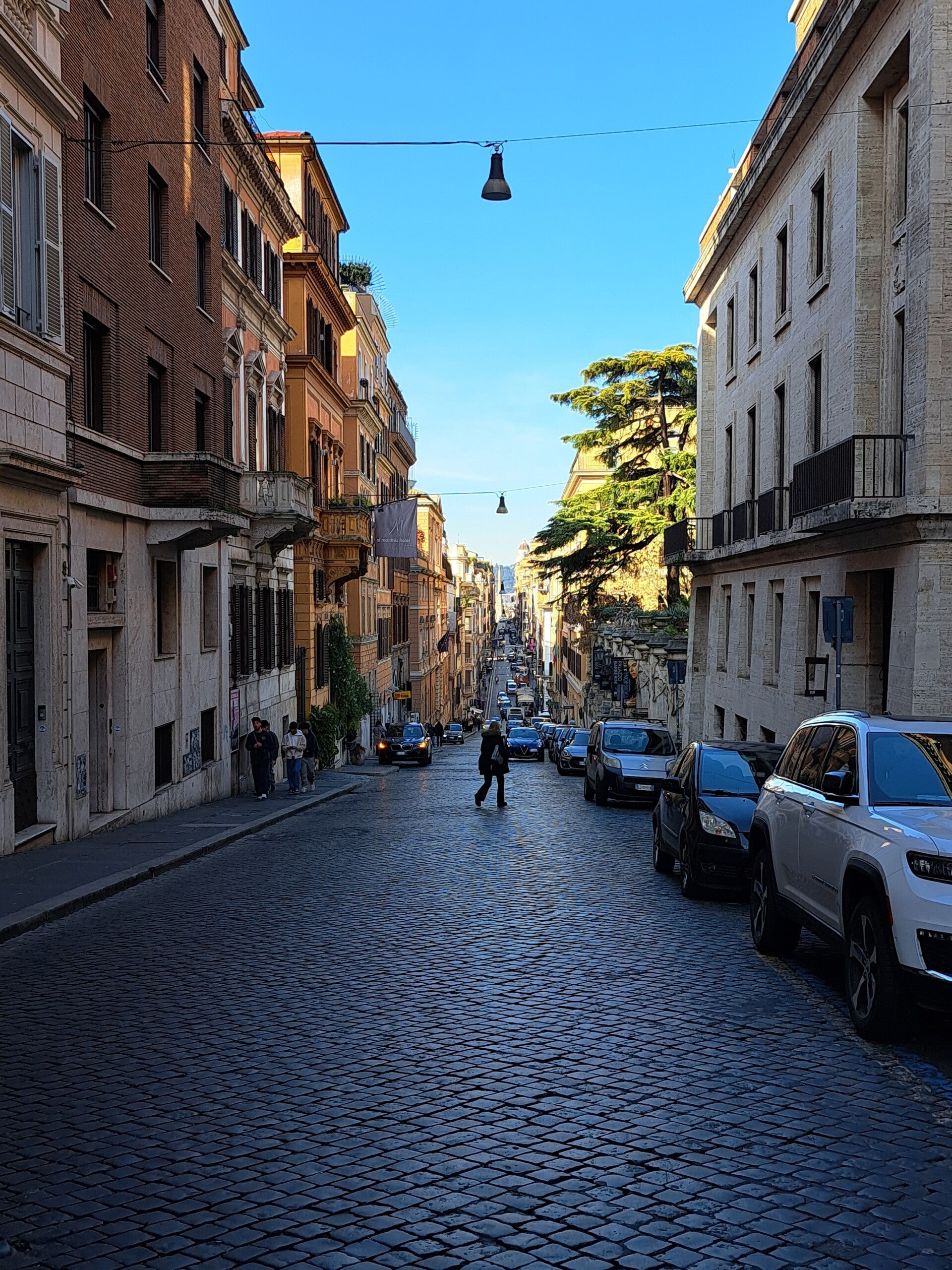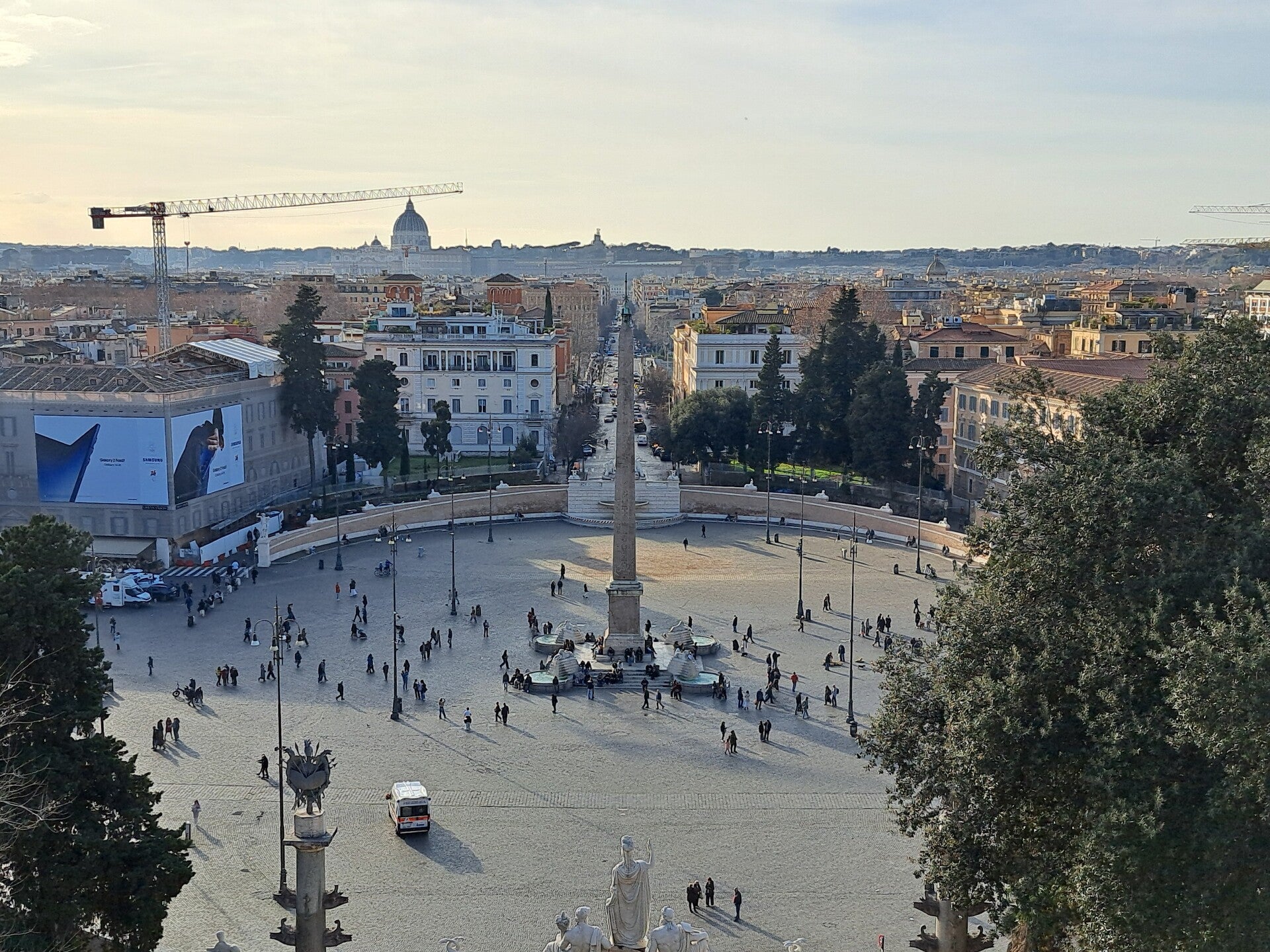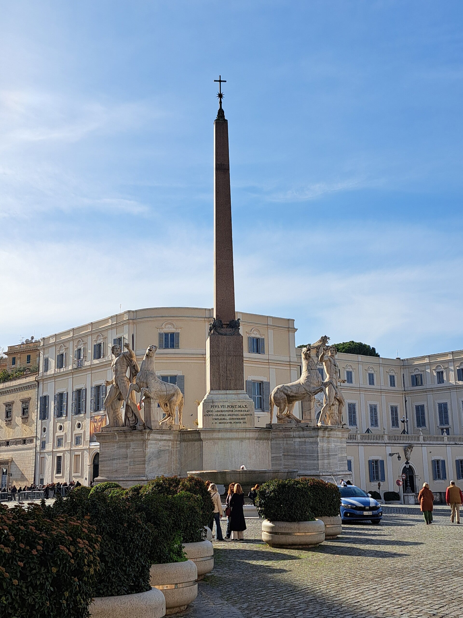 Gedurende de ochtend liepen we dwars door de stad, van kerk naar plein, van fontein naar winkelstraat. Ook het Piazza del Quirinale mocht niet ontbreken. Op dit plein een fontein die ooit in Romeinse stijl was ontworpen en gebouwd, maar waar later doodleuk een Egyptische obelisk aan is toegevoegd. Aan het plein ook nog het presidentieel paleis (vroeger pauselijk paleis). Verder is het zo ongeveer het hoogste punt van de stad, dus je kijkt uit op onder andere het Vaticaan in de verte. Na een afdaling kwamen we uit bij de Trevifontein en de Spaanse trappen, waar we in de buurt gingen lunchen. In de middag gingen we door met de tocht kriskras door het centrum, met nu wel wat vaker een stop in leuke winkeltjes. Daar kwam een einde aan bij het Piazza del Popolo, want van daar klommen via trappen omhoog naar het grote openbare park Villa Borghese. Hier liepen we nog de laatste kilometers van de geplande tocht, waarna we afdaalden terug richting centrum. Nog even een echte gelato (ijsje), dat hadden we wel verdiend. Daarna bracht bus 71 ons weer terug richting appartement. Met zeer moeie benen zochten we in de avond een restaurantje om de hoek, we vonden het wel prima zo. Bleek het ook nog eens het leukste en beste restaurant dat we tot dan toe hadden gehad, perfect om voor de laatste avond te bewaren. Lekkere wijntjes, een goed gerecht en ook nog eens een heerlijk dessert. Een mooie afsluiter van deze stedentrip.