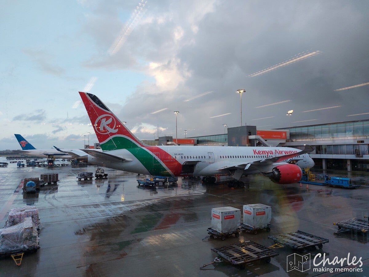 Na een nachtvlucht met het gebruikelijke slaaptekort (het lukt me gewoon niet, echt jaloers op die mensen die pardoes in slaap vallen) kwamen we in de hele vroege ochtend van dag 2 aan op de luchthaven van Nairobi. Zonder getreuzel door naar de volgende gate om onze overstap naar Dar es Salaam te halen. Door de veiligheidscontrole werden we nog even een poosje opgehouden, maar we waren op tijd bij de gate. Daar stond een stuk kleiner vliegtuig op ons te wachten voor een vlucht van ongeveer een uur. Het eerste deel van de vlucht ging alles prima, met zelfs een prachtig uitzicht op de Kilimanjaro, vanaf het dalen werd het pittig. Allebei pijn in oren, kaken, nek en zelfs voorhoofd vanwege het drukverschil. De oren hebben zo ongeveer de rest van de dag nog dicht gezeten.