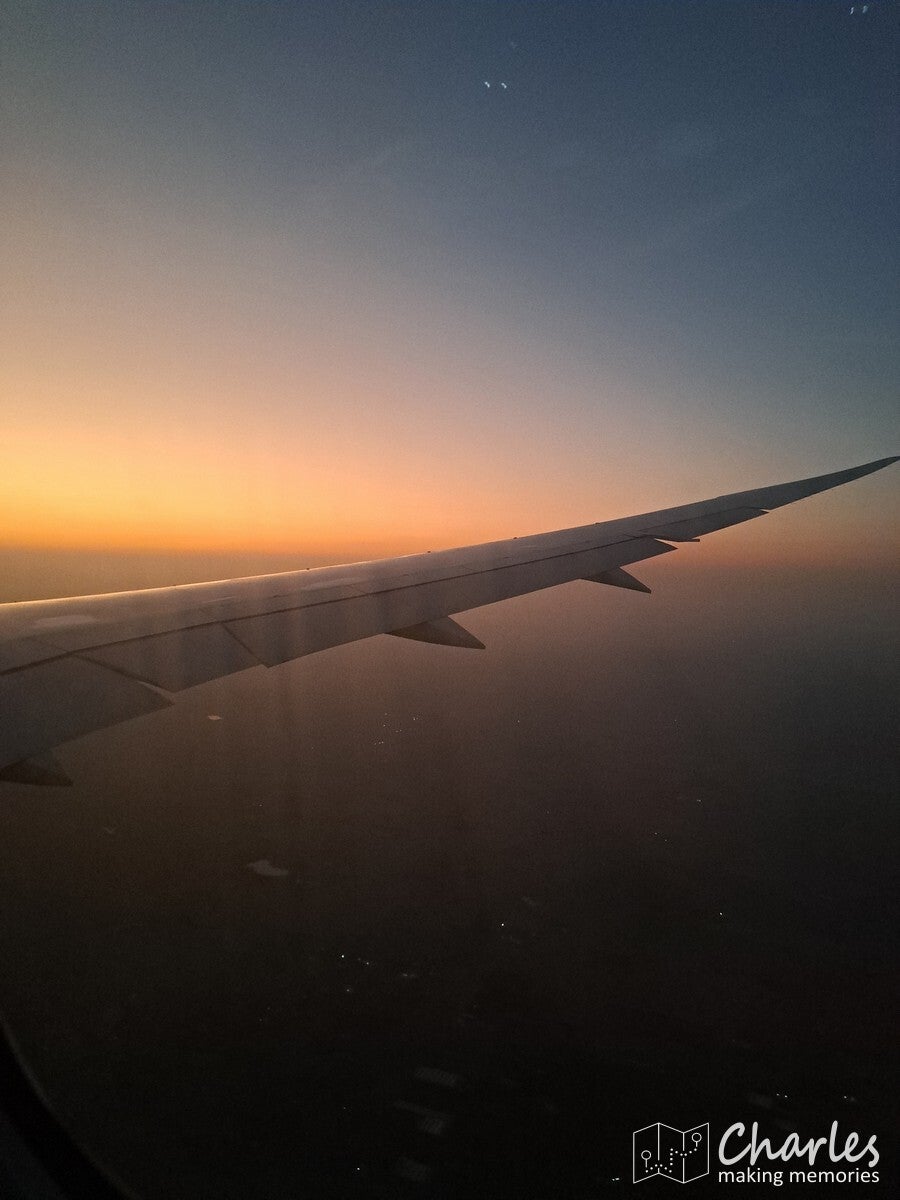 Eind van de middag waren we er (gelukkig ook gewoon op tijd) helemaal klaar voor, we konden op reis. Gelukkig kregen we een lift naar Schiphol aangeboden, wel zo fijn in de septemberstorm (waardoor er ook nog eens geen treinen reden rond Waddinxveen). Zonder noemenswaardige vertraging werden we afgezet bij terminal 2. Nog even afscheid nemen en dan op het gemak de bagage droppen, door de beveiliging en als laatste door de douane. De vakantiekriebels kwamen nu toch wel op. Tijd genoeg om nog even een hapje te eten voor het boarden, wel zo prettig met een nachtvlucht in het vooruitzicht. Ook de vlucht had geen vertraging, op tijd stegen we op. Na een flinke bocht in zuidoostelijke richting, via Duitsland en Italië werd koers gezet naar Afrika.