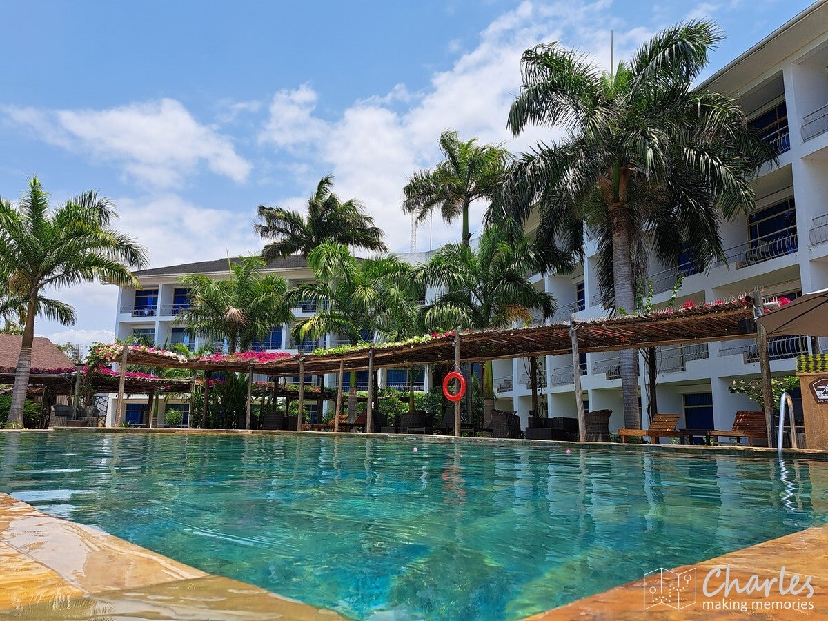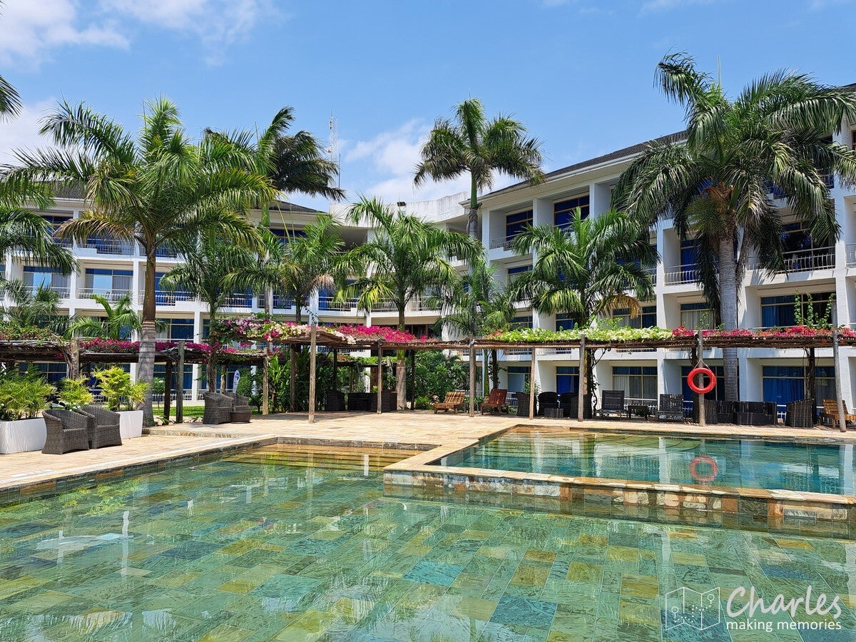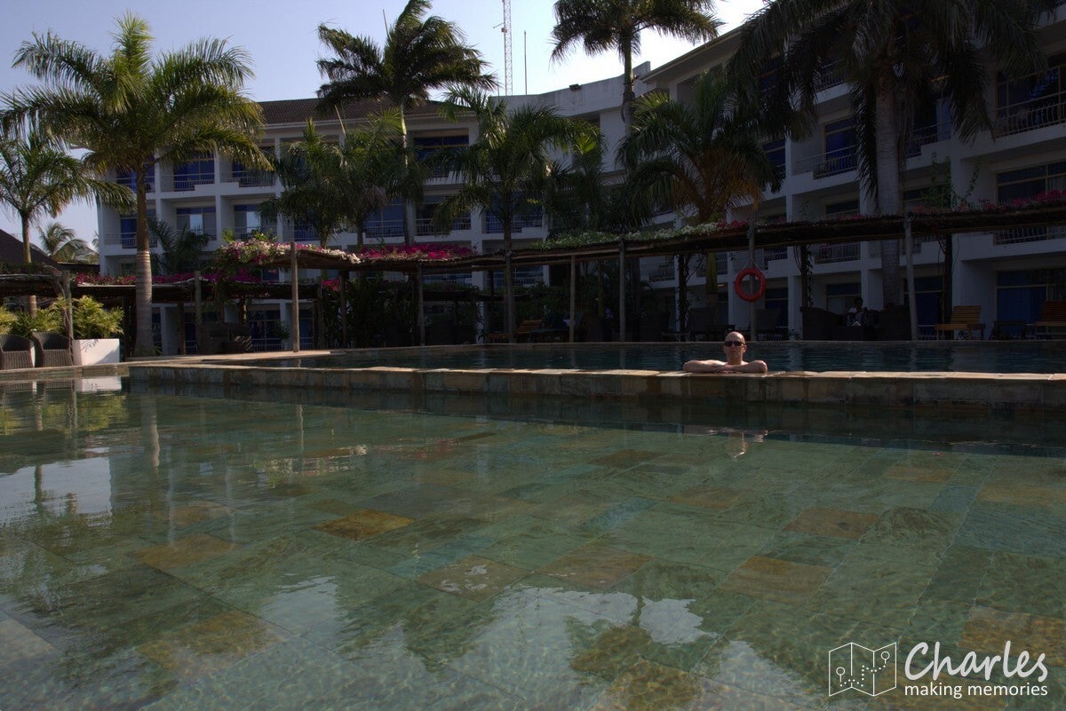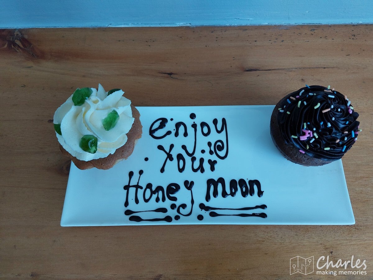 Eind van de ochtend waren we dan eindelijk bij ons hotel. Een lekker luxe hotel op een aantal kilometers buiten de stad, heerlijk aan het witte strand. Ideaal om even bij te komen na de lange reis. Op de kamer wachtte een leuke verrassing: wij werden als bruidspaar door een kunstwerk van bloemen op het bed welkom geheten en voor allebei stond een heerlijke cupcake klaar. Wat was dat leuk! Na deze verrassing snel omkleden en lekker richting zwembad. Na wat plonzen en de lunch het voornemen om nog even te lezen, maar we hielden de ogen niet meer open. Dan maar een klein tukkie doen in de schaduw. Later op de middag nog even een kort rondje over het strand en richting het einde van de middag nog twee tropische mocktails. Een proost op onze honeymoon, fijn om even bij te komen op deze mooie plek.