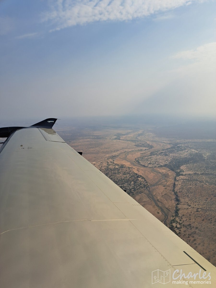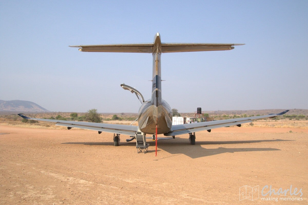 Gepland vertrek van onze vlucht was 7.40 uur, maar om 7.15 uur kwam er een vrouw onze kant op dat we konden instappen. Totaal verkeerd vluchtnummer, maar de bestemming bleek wel te kloppen. Snel nog even instappen in het kleine propellorvliegtuigje (er waren maar vier medepassagiers) en we gingen gelijk op pad. Nog even een briefing van 10 seconden en alles was duidelijk.