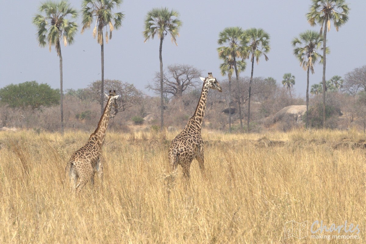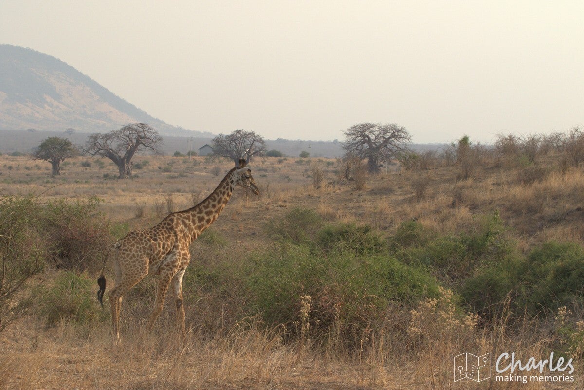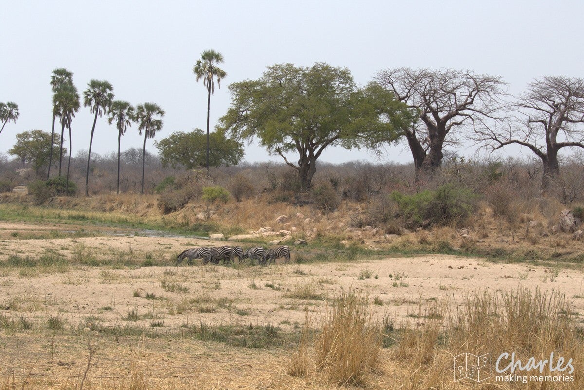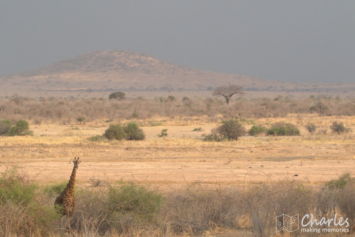De vlucht liep voorspoedig, waardoor we veel vroeger dan gepland de daling inzetten. Het laatste stuk van de vlucht was al boven Ruaha NP, het park voor de komende twee dagen. Nog voordat het vliegtuig de wielen aan de grond op de airstrip kon zetten, waren al olifanten en giraffes gespot. Tijdens het stukje rijden naar de 'gate' (eigenlijk meer een stuk gemarkeerd zand) werden ook nog impala's, zebra's en bavianen gezien. Dat beloofde dus al heel wat goeds voor de dag.