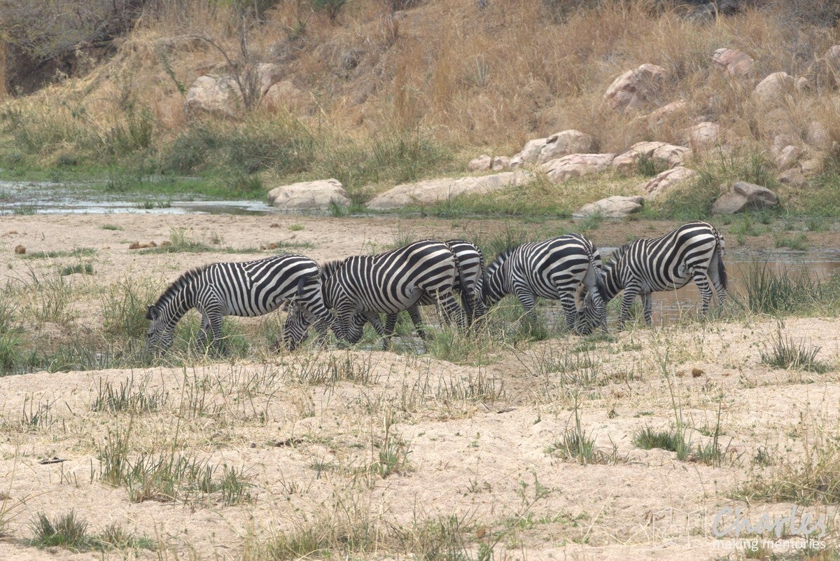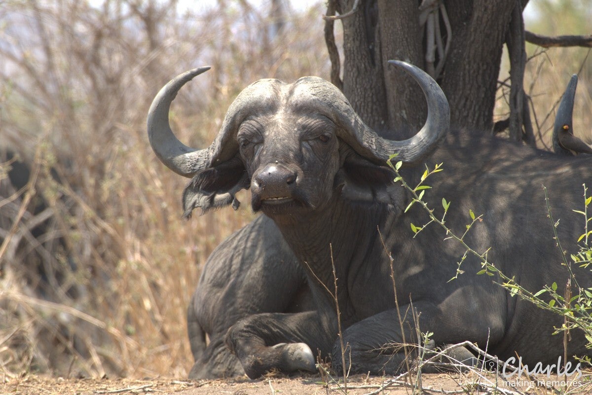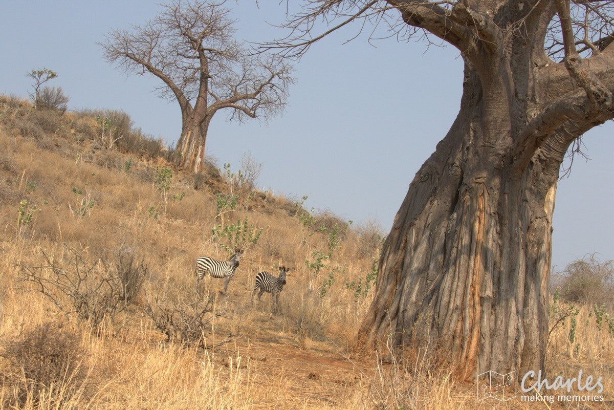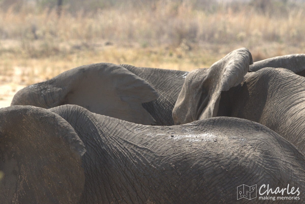 De vlucht liep voorspoedig, waardoor we veel vroeger dan gepland de daling inzetten. Het laatste stuk van de vlucht was al boven Ruaha NP, het park voor de komende twee dagen. Nog voordat het vliegtuig de wielen aan de grond op de airstrip kon zetten, waren al olifanten en giraffes gespot. Tijdens het stukje rijden naar de 'gate' (eigenlijk meer een stuk gemarkeerd zand) werden ook nog impala's, zebra's en bavianen gezien. Dat beloofde dus al heel wat goeds voor de dag.