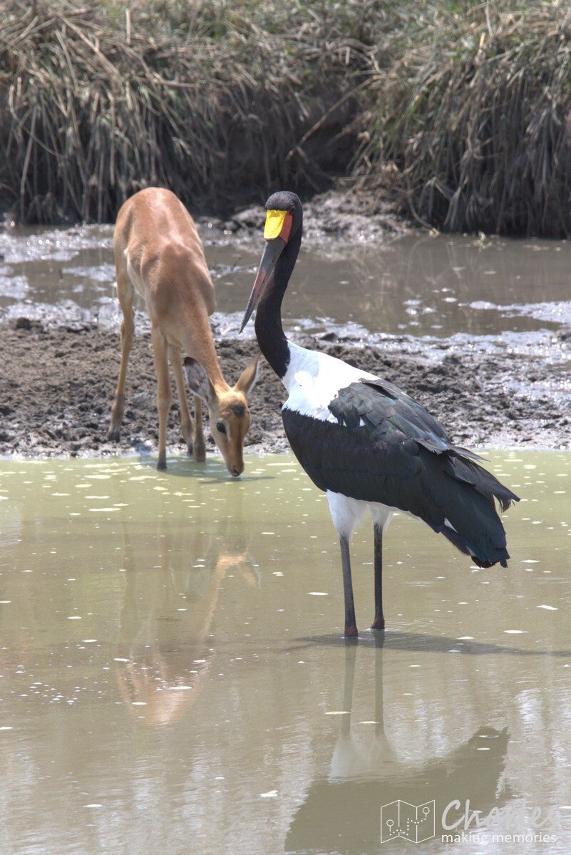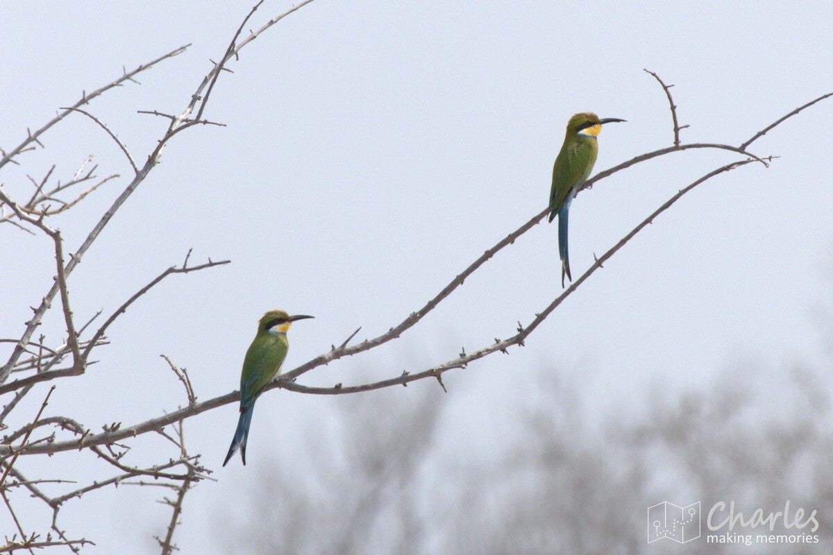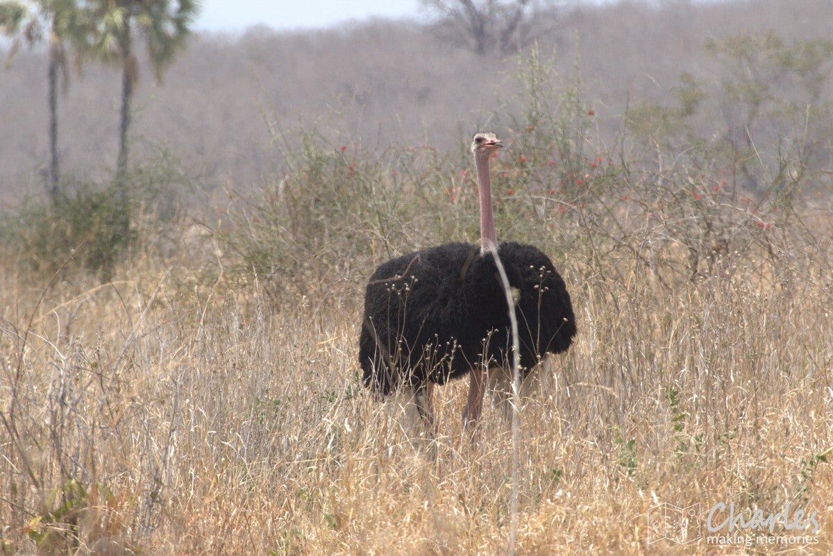 Nog even inladen en we konden op pad in onze auto met een openklapbaar dak. Tijdens de rit kun je gewoon lekker zitten en als je iets spot kun je gaan staan om alles goed te kunnen zien. We waren nog maar net bij de landingsbaan vandaan en we stopten al voor de eerste dieren, een paar leuke vogels. Wij gelijk de camera weer tevoorschijn en klikken maar. Vervolgens een compliment naar Ben dat hij ook stopt om kleine dieren te bewonderen. Hierop gaf hij aan dat het voor hem ook een soort test was om te zien wat we wel en niet leuk vinden. Slim bedacht dus. Vanaf dan werd er dus voor nagenoeg alle dieren even gestopt, helemaal fijn. Het gaat te ver om over alle dieren die we hebben gezien een verhaaltje te tikken, het waren er gewoon erg veel. Hieronder pik ik er wel een paar bijzondere uit.