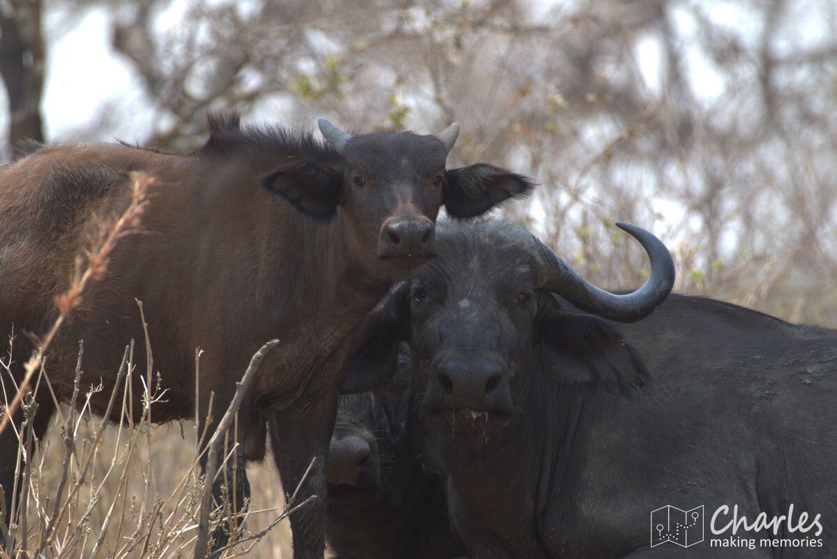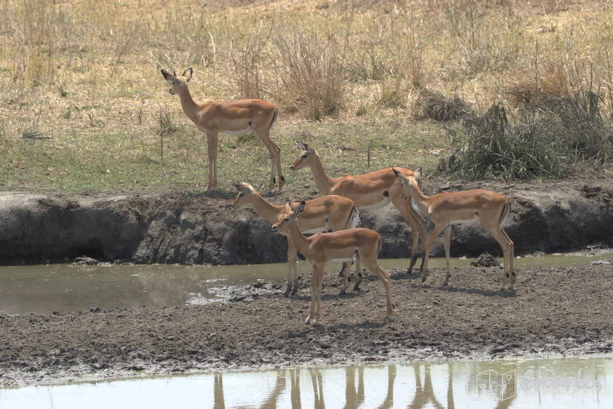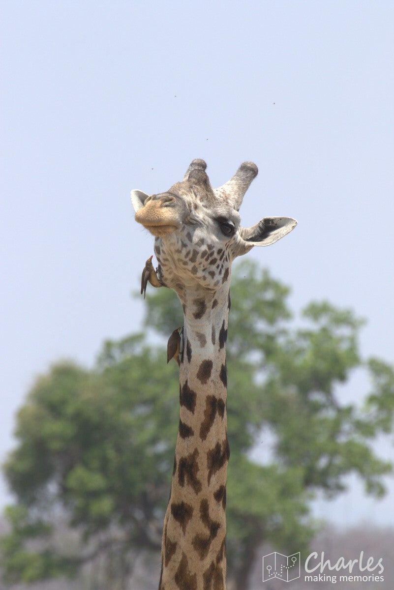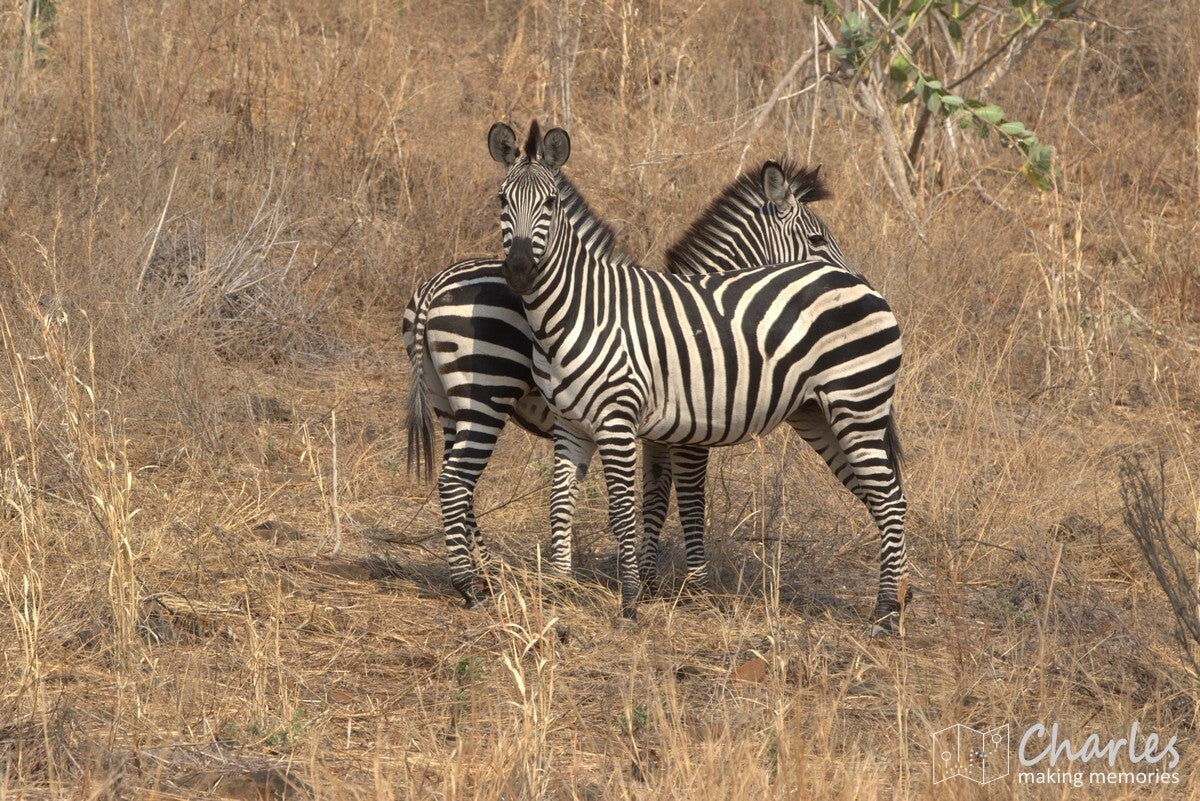 Na het uitstappen werden we begeleid naar een overkapte plek waar we konden wachten op onze gids. Er kwam net een soort safari-jeep aanrijden van de organisatie waar wij bij hadden geboekt. Na een paar minuten wachten toch maar daarnaartoe gelopen en gevraagd of hij toevallig Ben was, onze gids/chauffeur voor de komende twee weken. Het antwoord was ja, hij had ons alleen een uur later verwacht en had ons daarom nog niet gezocht. Terwijl alles in orde werd gemaakt, vermaakten wij ons met foto's maken. Er kwam in de verte namelijk van alles voorbij: giraffes, impala's en zebra's. Nog voordat we een meter hadden gereden, hadden we al bijna een halve SD-kaart volgeschoten.