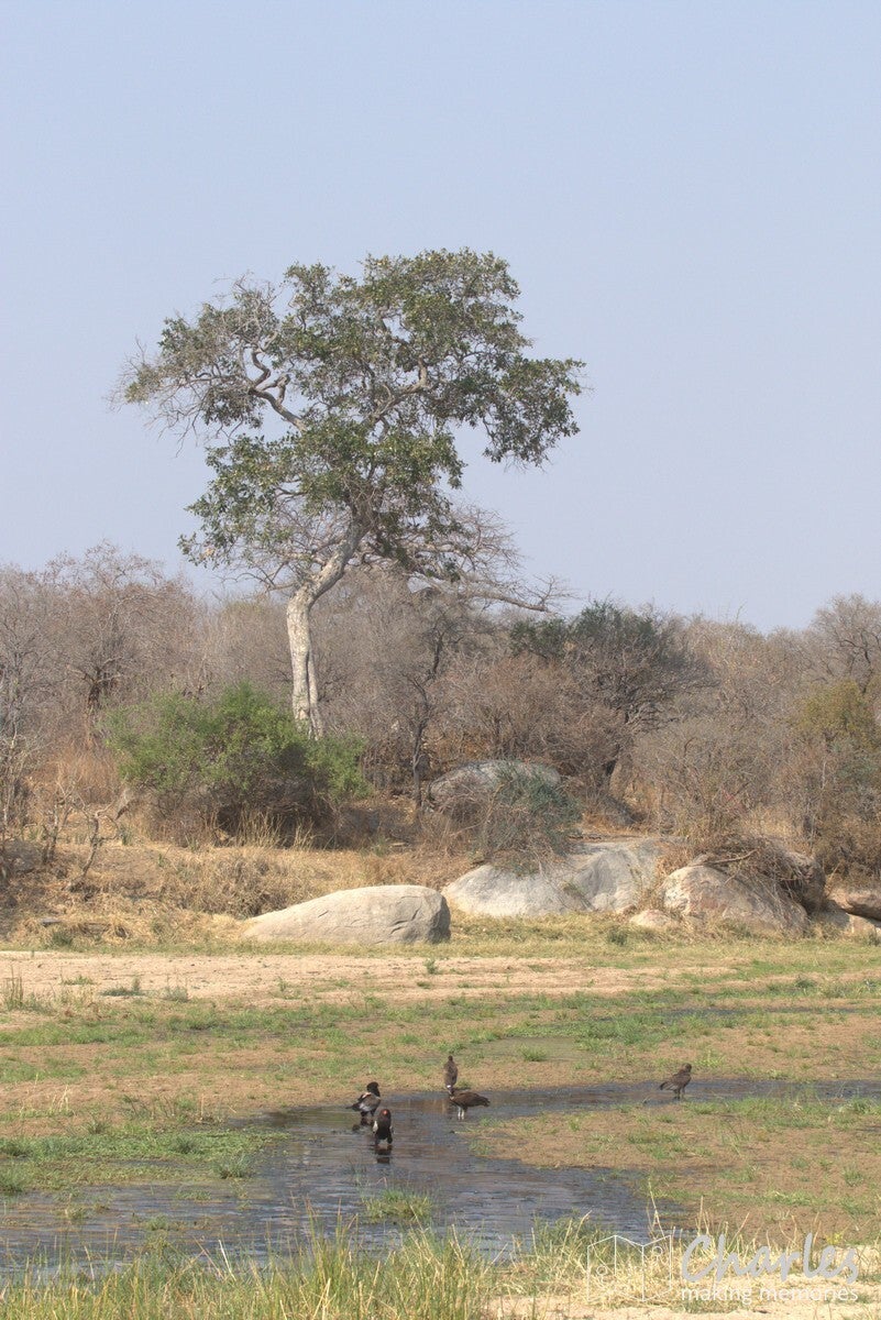 Een tweede memorabel verhaal gaat over bavianen. Er was een grote groep op trektocht langs en later door de drooggevallen rivier. Op een gegeven moment viel ons op dat een vrouwtje nogal lomp liep te slepen met een jonkie. Deze bleek dus al dood te zijn, het schijnt dat deze dieren als soort teken van rouw dan nog een poosje het jong meeslepen. We bizar om te zien.