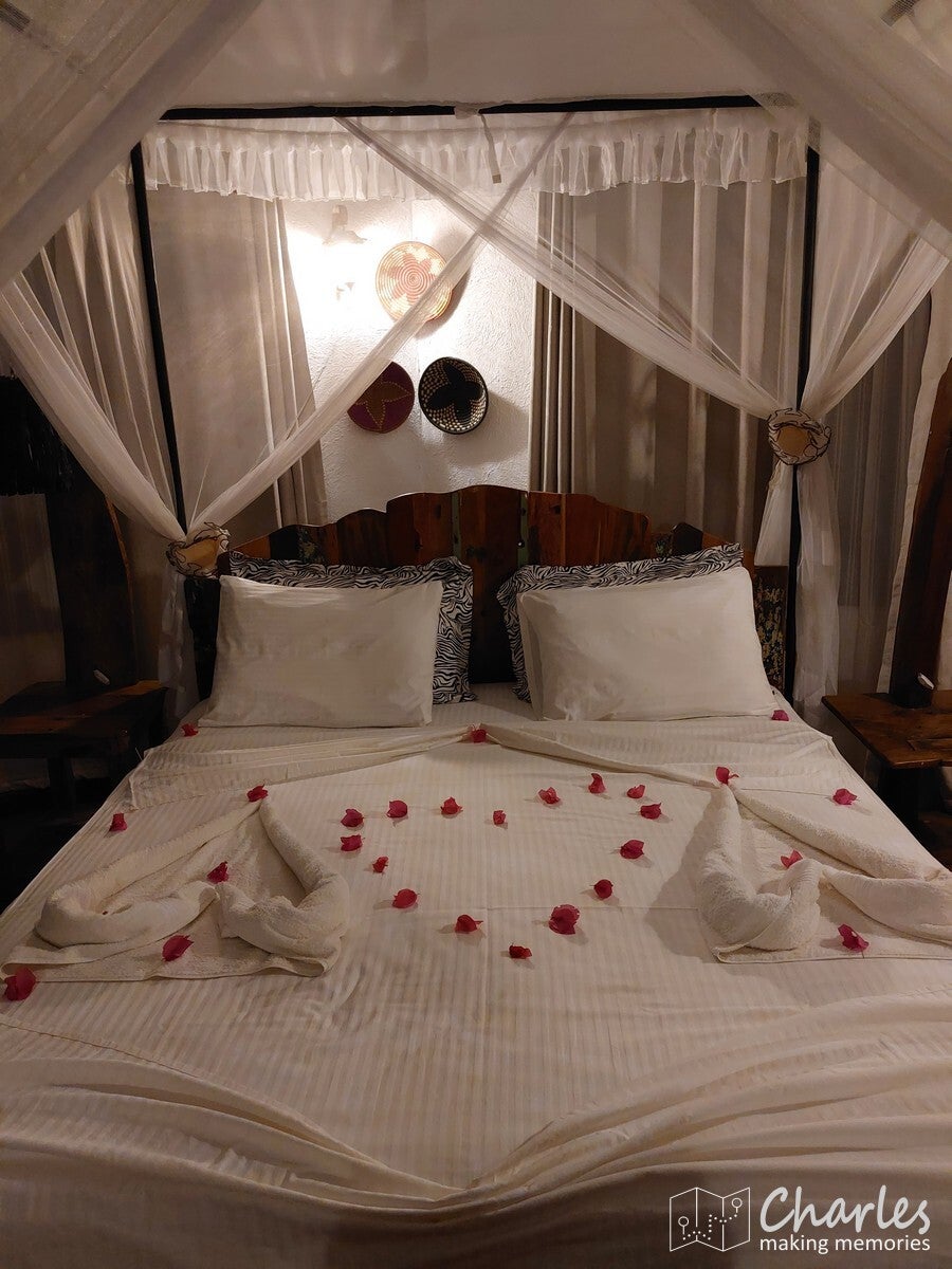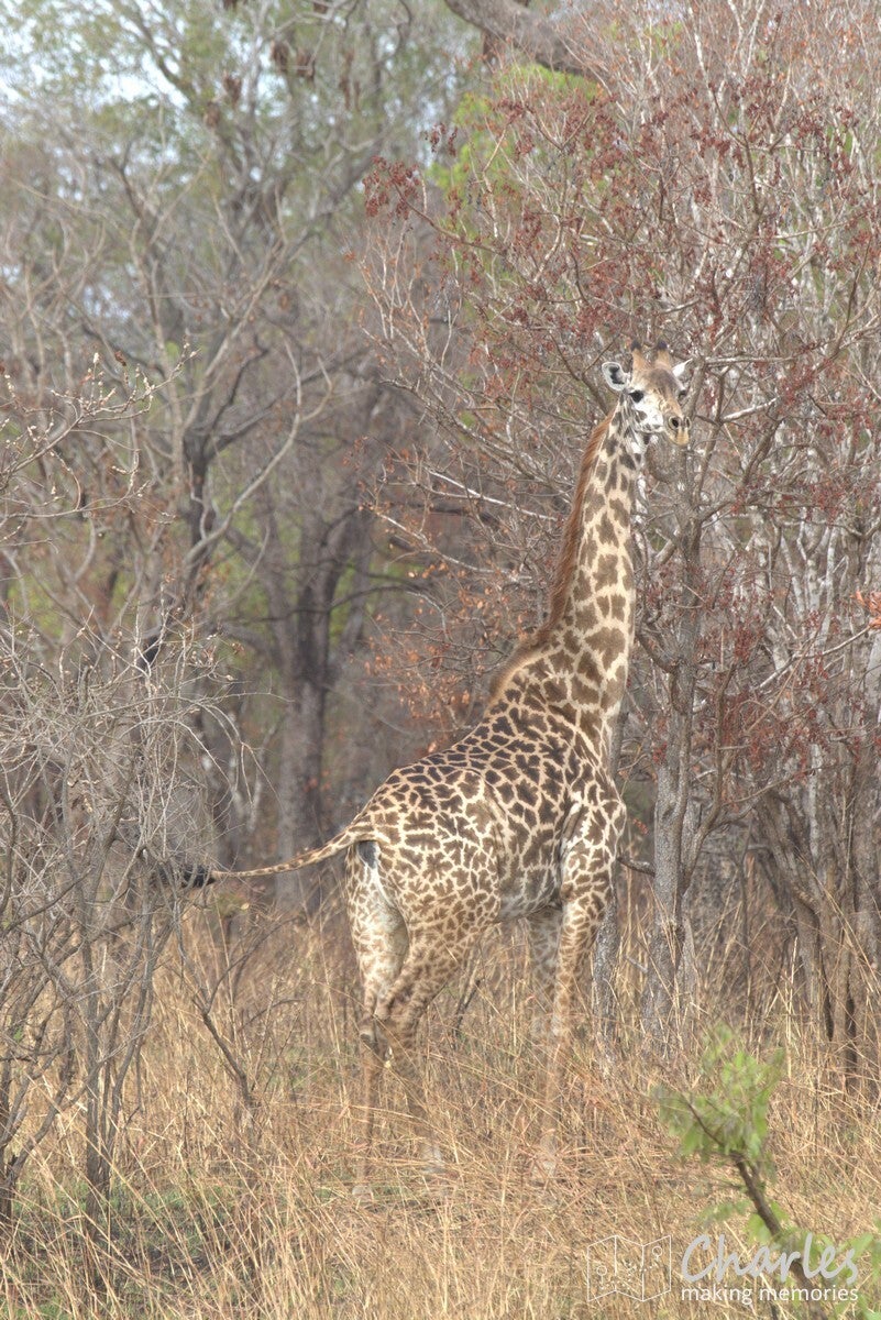 Inmiddels was het half vier, nu begon het echt te kriebelen om nog even wild te spotten. Snel dus de auto in en rijden maar. Direct na de ingang kwamen we al snel veel dieren tegen, de redbuck was de eerste maar ook giraffes, wrattenzwijnen en zelfs een ietwat boze olifant lieten zich ook zien. De laatste bleek best wel mazzel te zijn, want hiervan zijn er niet zo veel. Dit heeft te maken met het verleden van Nyerere NP. Tot 2019 heette het gebied nog Selous Game Reserve. In het noordelijk gebied was er al de mogelijkheid tot gamedriven, verder naar het zuiden kon er voor veel geld worden gejaagd. Het olifantenbestand werd op die manier flink gedecimeerd. Om deze en andere redenen besloot de president van het land om er in ieder geval voor het grootste deel een nationaal park van te maken, zodat zaken beter geregeld en beschermd kunnen worden. Laten we hopen dat deze verandering de boel gaat verbeteren, al zal het niet van vandaag op morgen zijn. Aan de dieren merk je in ieder geval goed dat er tot voor kort op gejaagd is, ze zijn erg schichtig. Heel anders dan in andere parken in Afrika, je moet dus ook veel meer geluk hebben om iets te zien.
