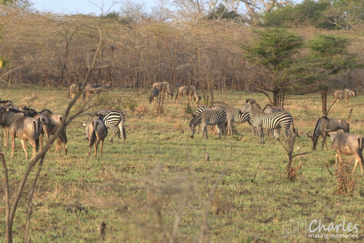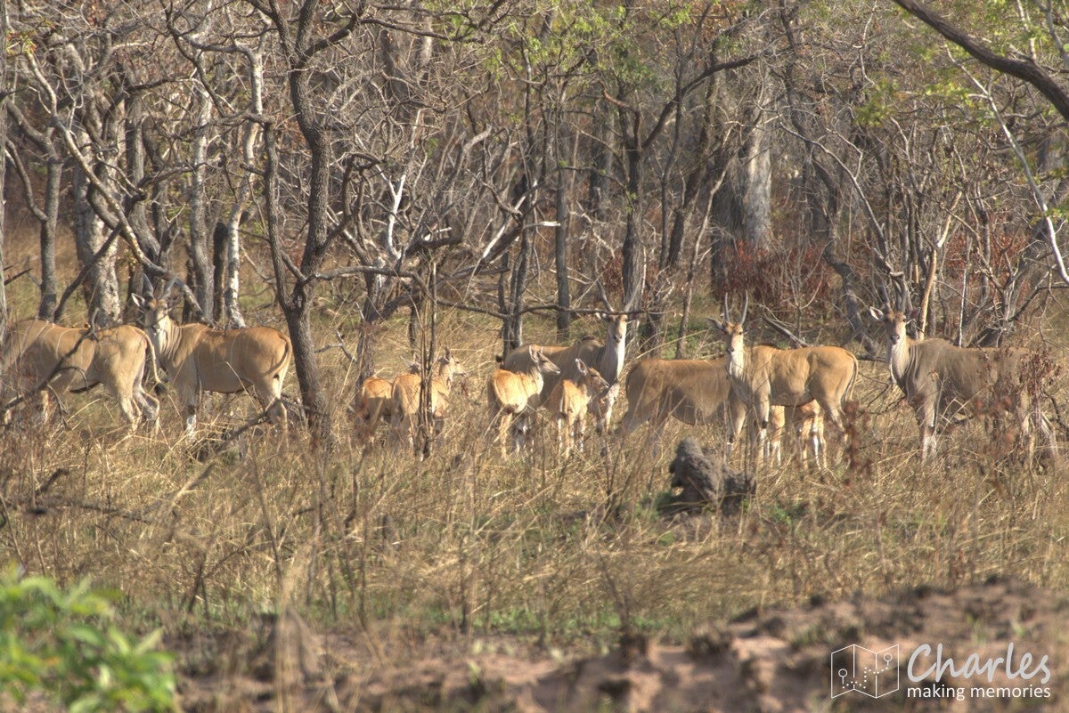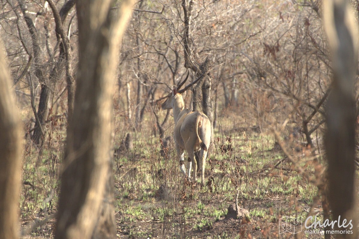 Wij hadden in ieder geval geen reden tot klagen, we zagen genoeg. Zelfs een grote kudde elandantilopen werd gespot, een zeldzaamheid. Scheelt mogelijk ook dat we de andere (niet standaard) ingang namen, we kwamen totaal geen anderen tegen. Hierbij maakte het ook nog eens uit dat we een afslag gemist hadden en op een doodlopende weg naar een waterkrachtcentrale hadden genomen. Daar kwamen we pas achter bij het hek van de centrale. Grootste probleem: die weg was 22 kilometer lang en die afstand moesten we ook nog eens terug. Om vervolgens nog eens 50 kilometer richting de andere poort te rijden. En dat terwijl je eigenlijk voor donker het park uit moest. Ben zei dat er niet veel aan de hand was, maar het feit dat hij met soms 90 kilometer per uur over de zandweg raasde deed ons anders vermoeden. Eenmaal op de juiste weg deed hij wel weer wat rustiger aan, maar het was nog steeds goed doorrijden. Hij nam wel de tijd om te stoppen als we iets leuks zagen, bijvoorbeeld op een vlakte waar echt heel veel grazers stonden. Uiteindelijk moesten we ook onderweg aan een tegemoetrijdende ranger uitleggen waarom we zo laat waren, iets doet ons vermoeden dat Ben flink zijn excuses moest aanbieden.