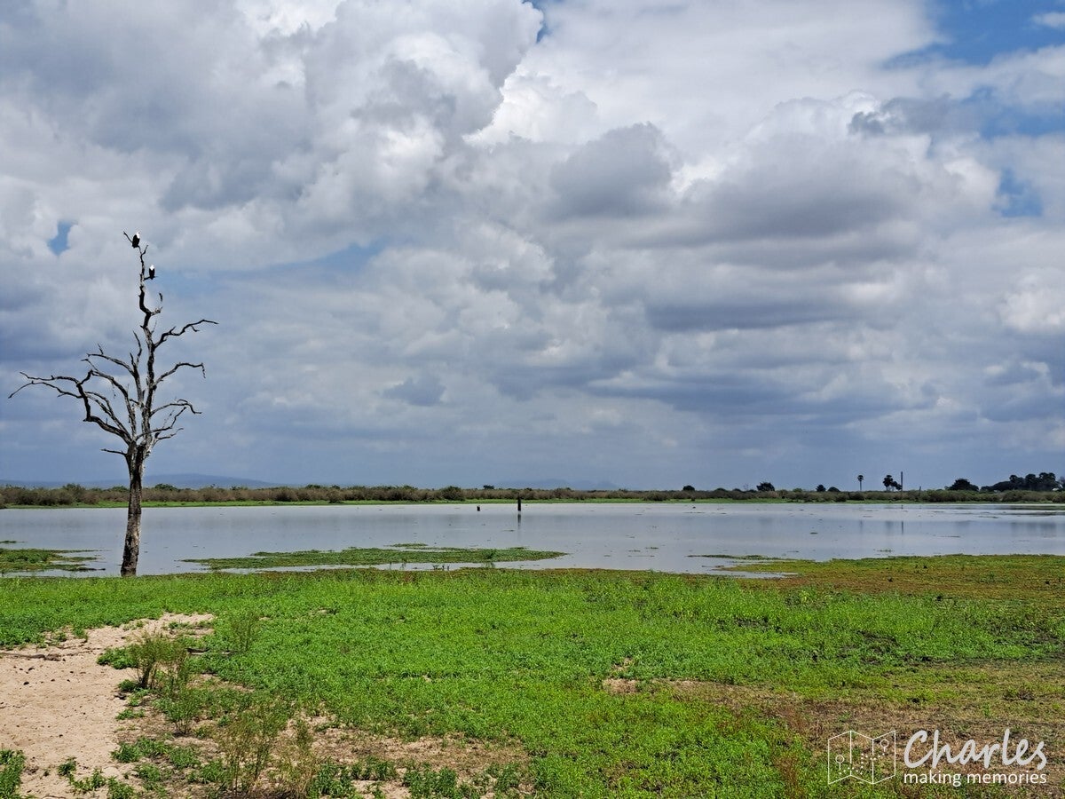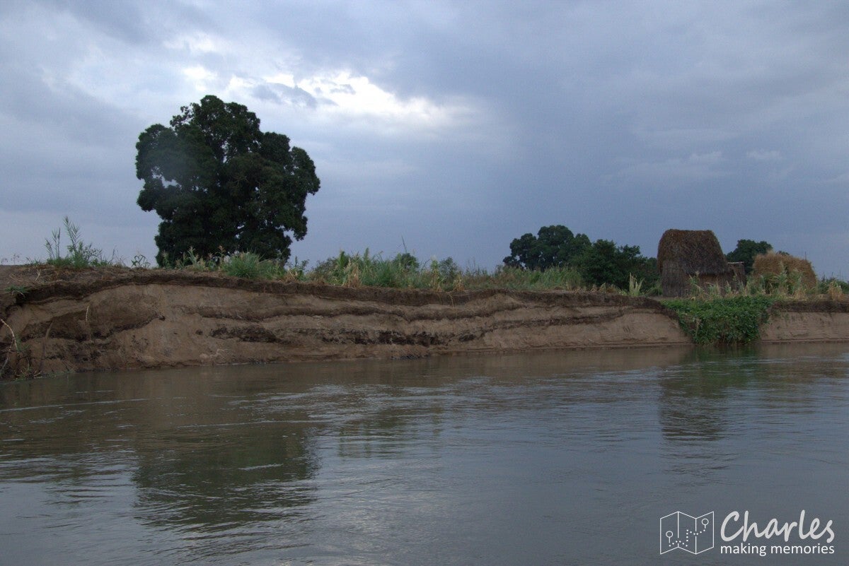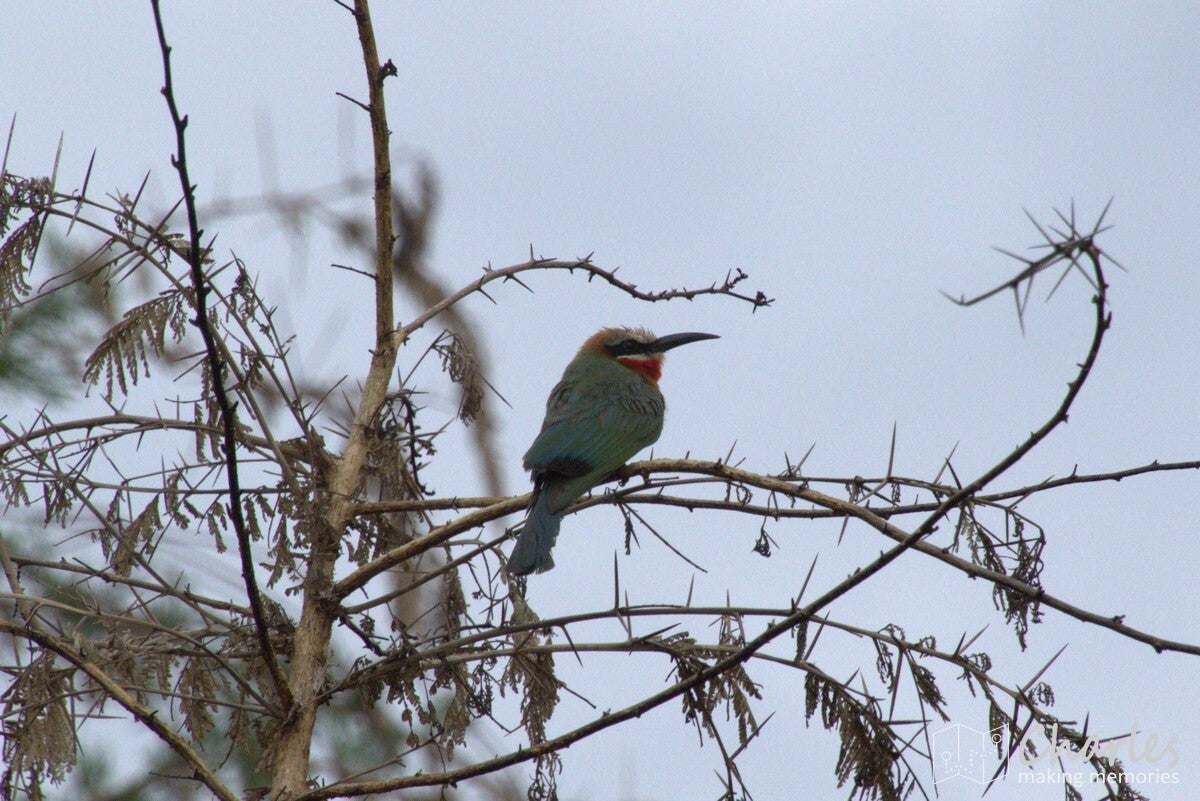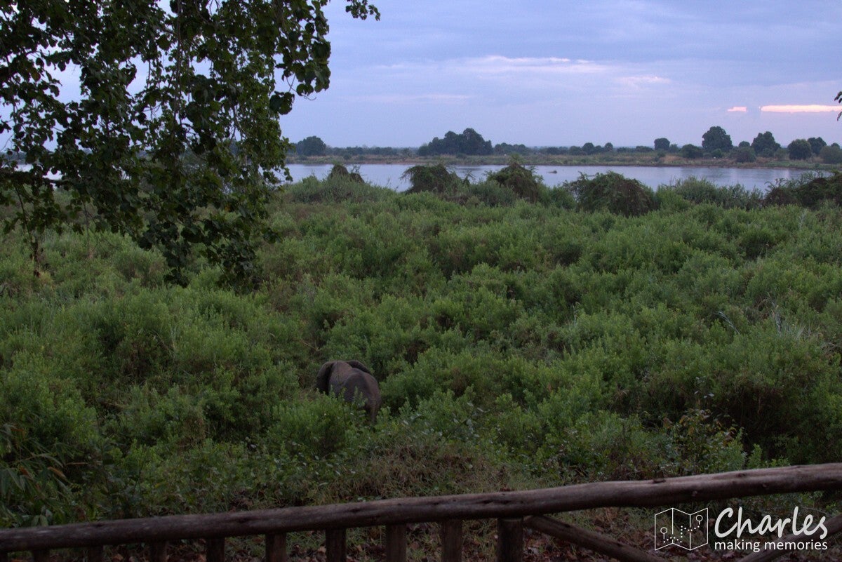 Aan het begin van de middag gingen we terug naar de lodge voor een late lunch. Terwijl vlak voor de lodge een kudde olifanten voorbijkwam moesten we nog even lachend terugdenken aan die hele rij auto's om een bosje waar twee olifanten verstopt zaten. Hetzelfde herhaalde zich trouwens nog eens bij het avondeten. Iets minder was dat er nog wel wat buitjes voorbij bleven komen, de 10 mm werd vandaag makkelijk overschreden. Ook tijdens de volgende activiteit bleef het niet droog: een boottocht op de rivier. De regen hield de dieren in ieder geval niet tegen: voldoende krokodillen, nijlpaarden en vogels om te bewonderen. Ook werd veel uitgelegd over het park, het dorp, het leven hier en de planten die langs de oever te vinden waren. Best leerzaam allemaal, de boottocht was helemaal prima. In de avond geen programma, gewoon lekker dineren in de lodge en verder rustig aan.