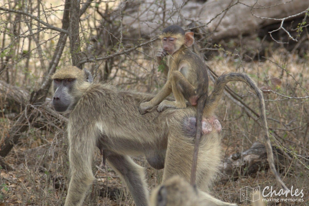 Even een zijstap in het verhaal, maar toch nog even een opmerking over het klimaat hier. Zowel september als oktober vallen in het droge seizoen, er valt dan bijna geen regen (minder dan 10 mm per maand). Dan mogen jullie nu raden wat er aan het einde van de ochtend gebeurde. Een korte, maar heel hevige bui. Gelukkig hadden we het op tijd in de gaten, alles was op tijd dicht. En tien minuten later konden we weer gewoon verder, dus ook weinig problematisch. De rest van de gamedrive nog veel leuke dieren gezien, van klein tot groot.