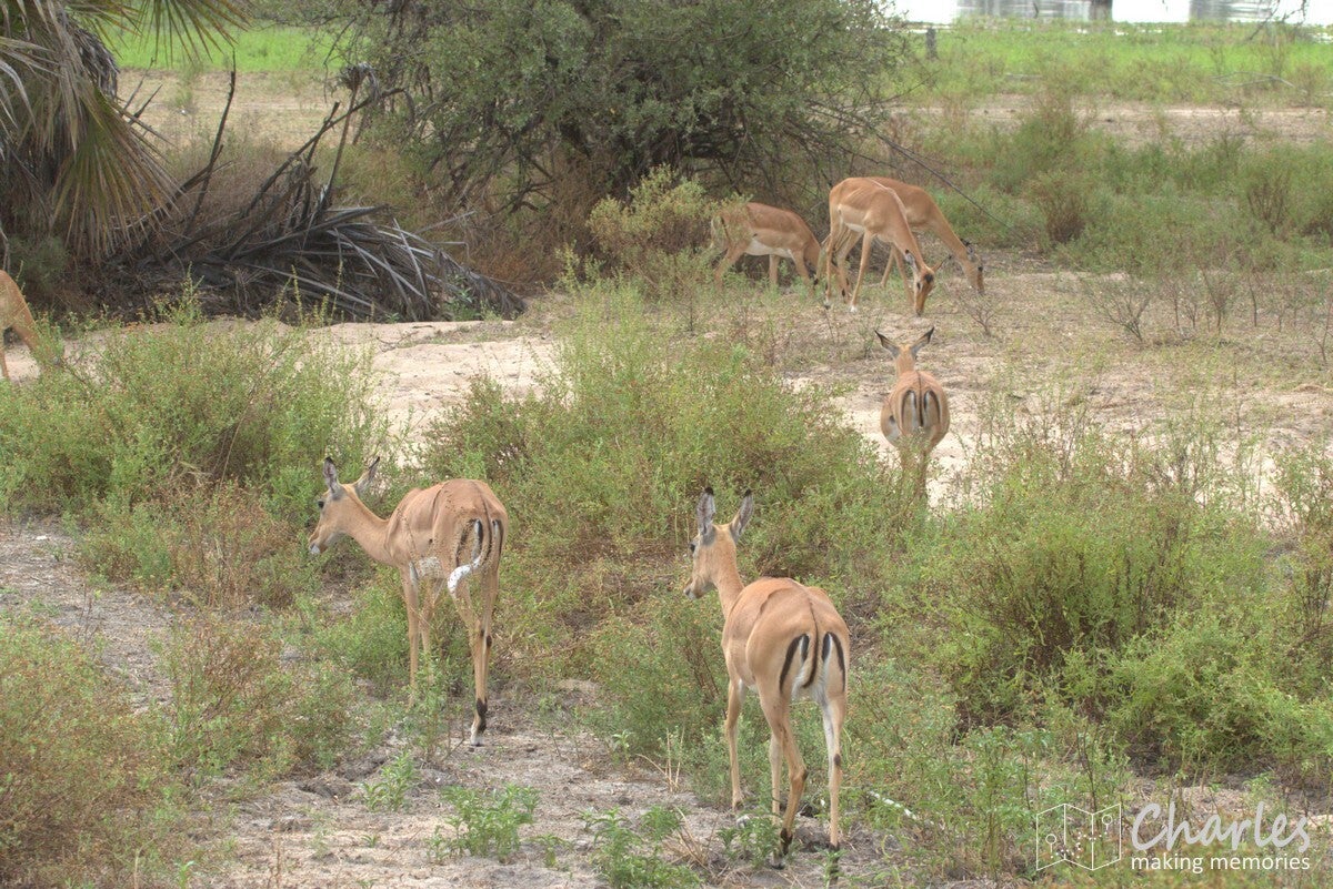 Onze strategische keuze om vroeg op pad te gaan werd niet echt uitbetaald. Wel genoeg giraffes, impala's en wrattenzwijnen, maar diverser dan dit werd het niet. Het duurde echt wel een of twee voor we meer diersoorten tegenkwamen, we waren zomaar blij van bavianen op ons pad. Daarna werd het wel veel beter, we zagen steeds meer. En we dachten de jackpot te hebben toen we wel zes auto's om een groep bomen zagen staan. Wij ook die kant op, maar get bleken 'slechts' twee olifanten te zijn. Je moet je voorstellen dat iedere ochtend veel mensen worden ingevlogen vanuit Zanzibar voor een dagje safari. Zij moeten dan in een paar uur zo veel mogelijk zien, maakt niet hoe. Zijn wij even blij dat we alle tijd hebben om vele dagen wild te bekijken.