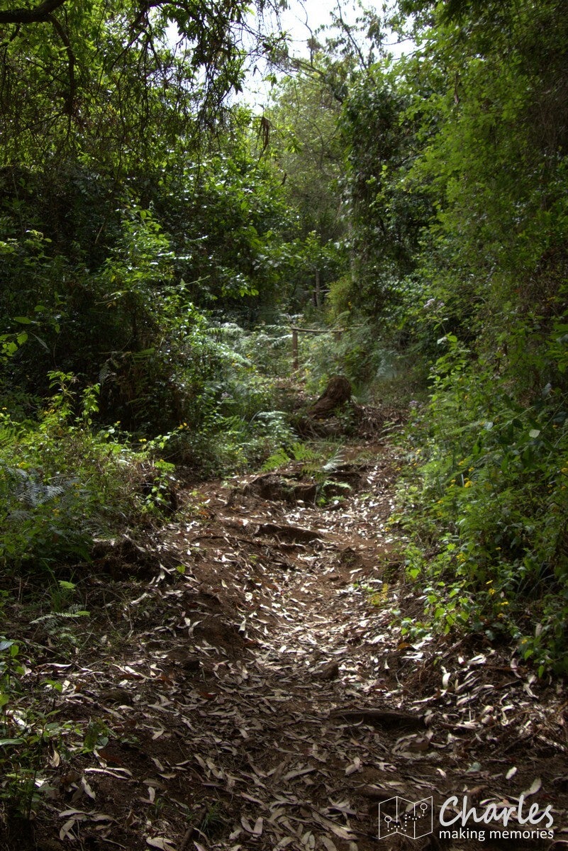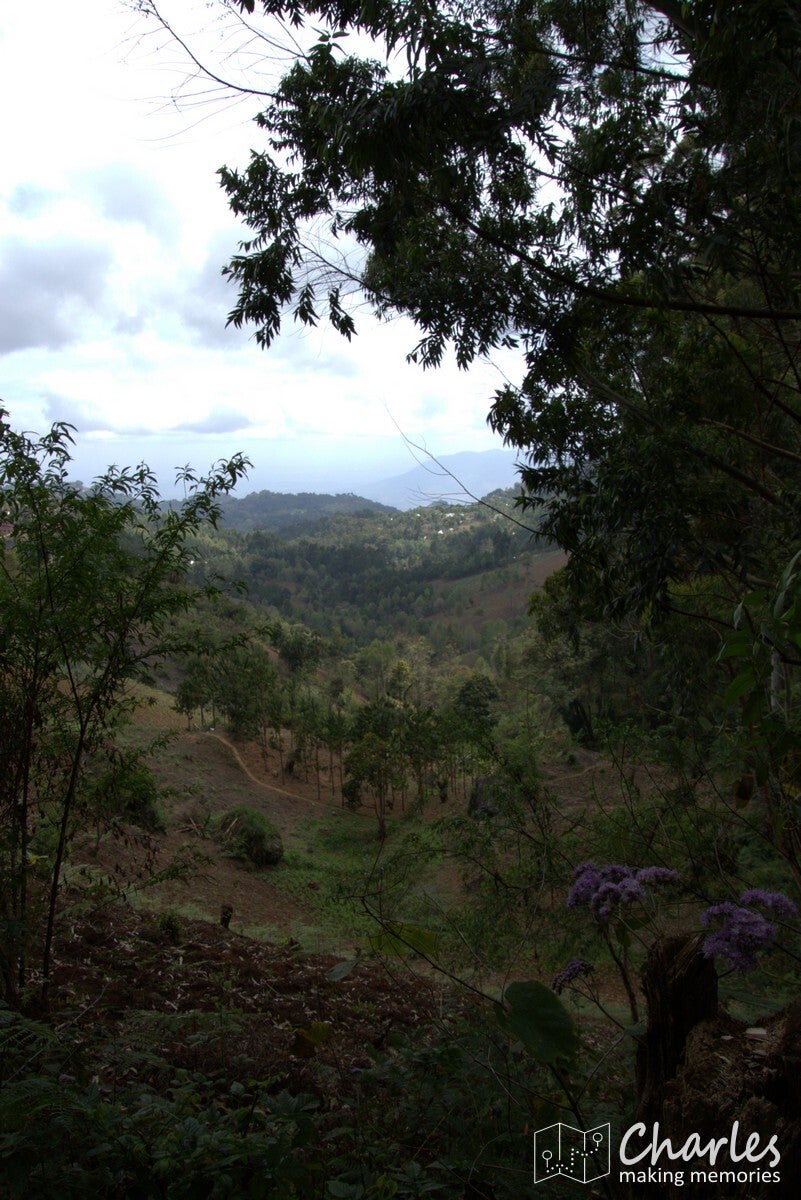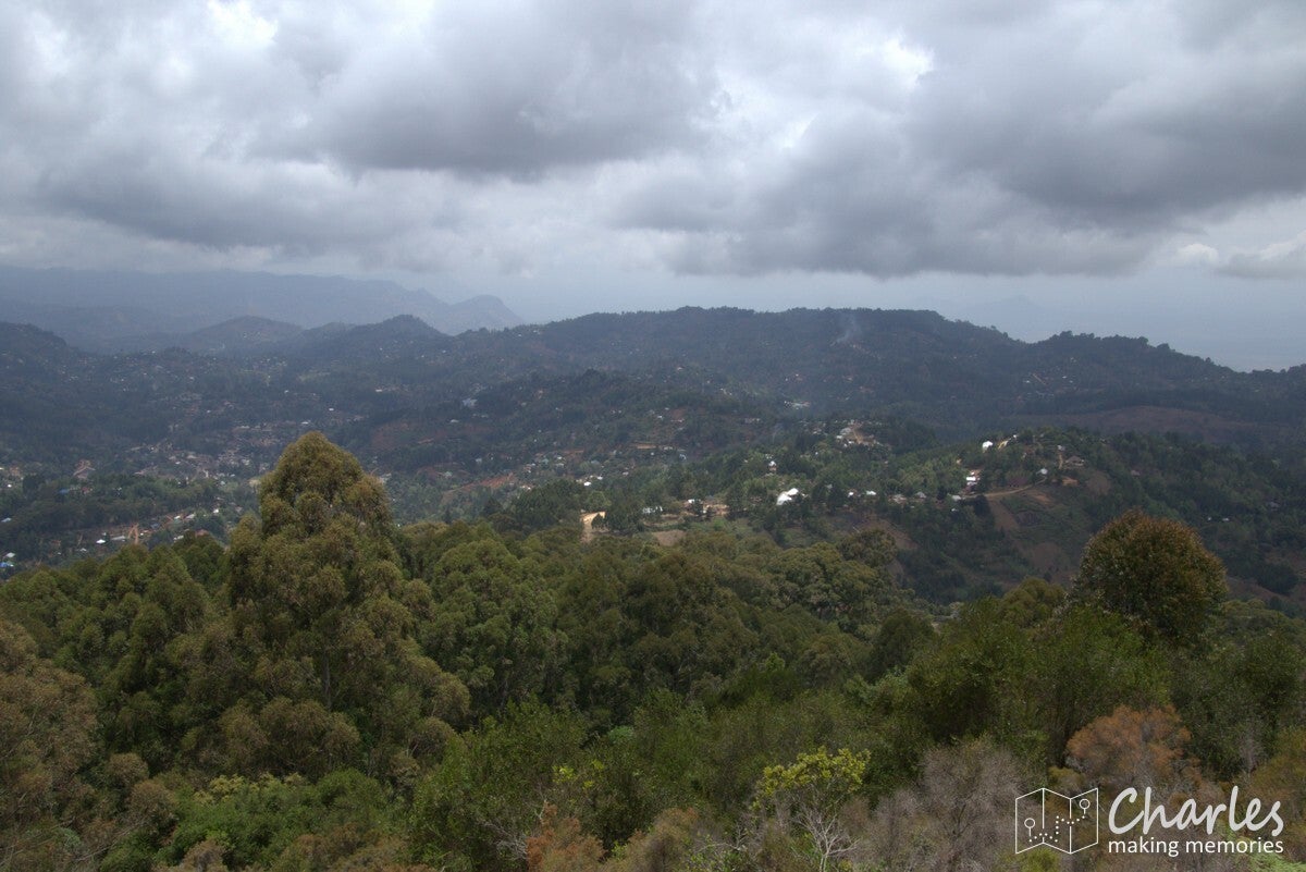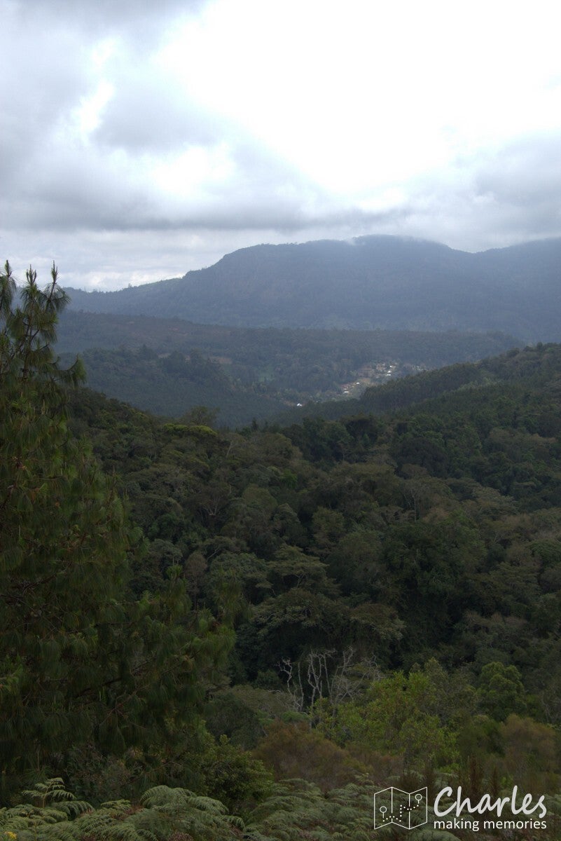 Na iets meer dan twee uur kwamen we aan bij de grens van Magamba. Een scherpe grens tussen bewoond gebied en het regenwoud, duidelijk dat achter de met een rij bomen aangegeven grens geen menselijk ingrijpen meer is toegestaan. Het regenwoud was indrukwekkend, met gigantisch hoge bomen. Niet vergelijkbaar met tropisch regenwoud, zoals we dat kennen van Azië en Zuid-Amerika, maar koeler en toch wat droger. Veel varens en mossen en zoals gezegd echte woudreuzen. Het klimmen werd in het bos in ieder geval intenser: veel modder en boomwortels en soms echt hele steile stukken. Bijna bovenop de heuvel kwamen we uit bij een oude Duitse schuilplaats (tijd van WW1), daarna nog een laatste stuk helling met treden op voordat we de top met de naam Kigulu Hakwewa hadden bereikt. We stonden nu op 1.840 meter hoogte en hadden een weids uitzicht over Lushoto en omgeving.