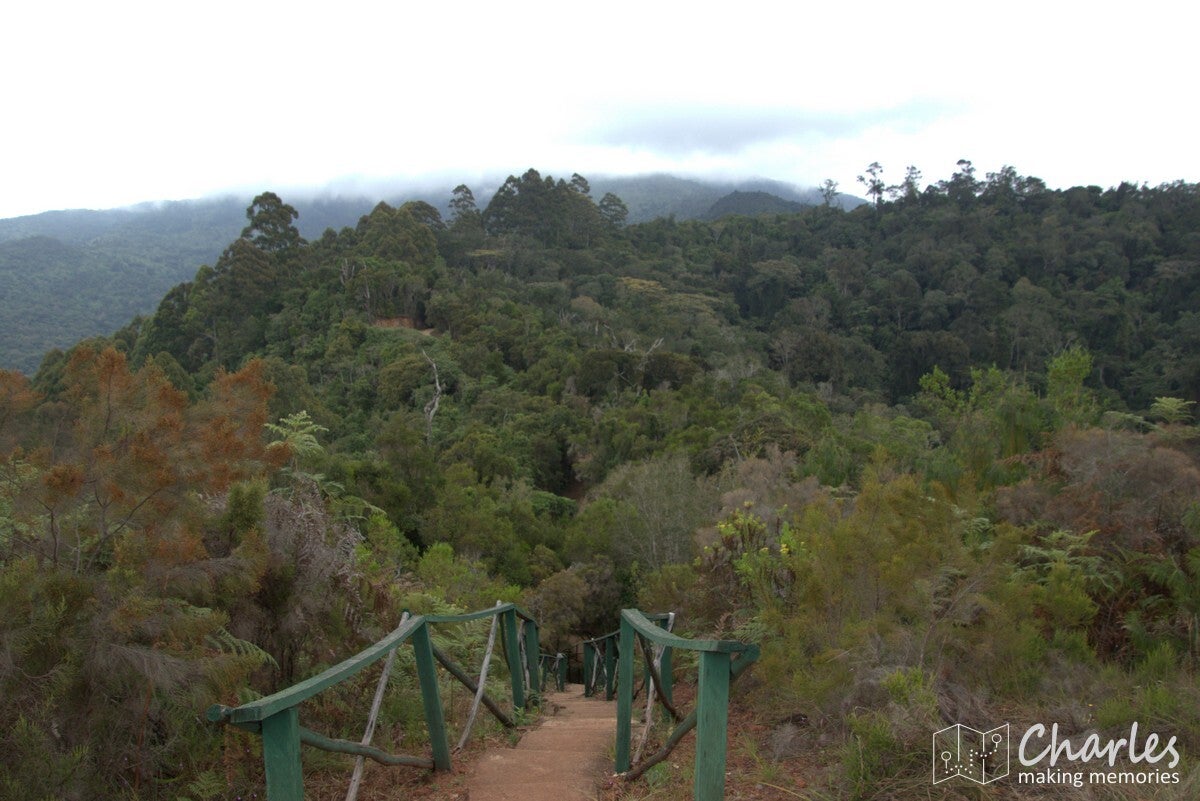 Vertrek van de wandeling is vanaf de lodge. Dat betekent dus ook zelf die klim van ruim 400 hoogtemeters maken. Niet voor niets wordt een richttijd van zo'n 6 uur aangegeven voor deze onderneming. Het goede nieuws voor ons was wel dat er een ervaren gids werd meegestuurd. Dat vergroot de kans de juiste weg te vinden en weer voor het donker terug te zijn wel met 99%. Nicolas was de naam, onze namen heeft hij vast niet onthouden.