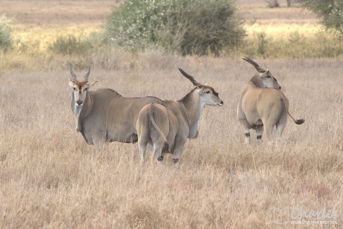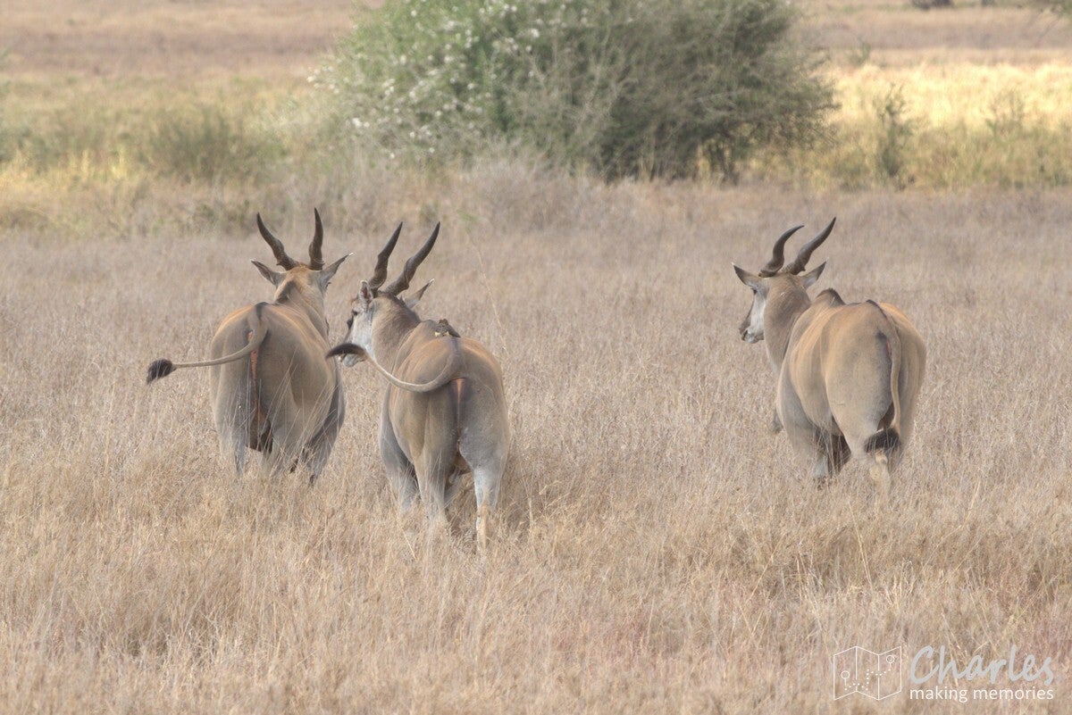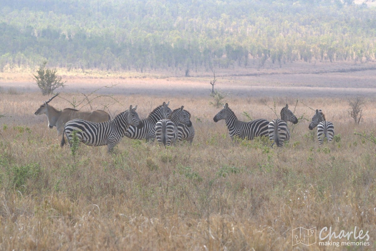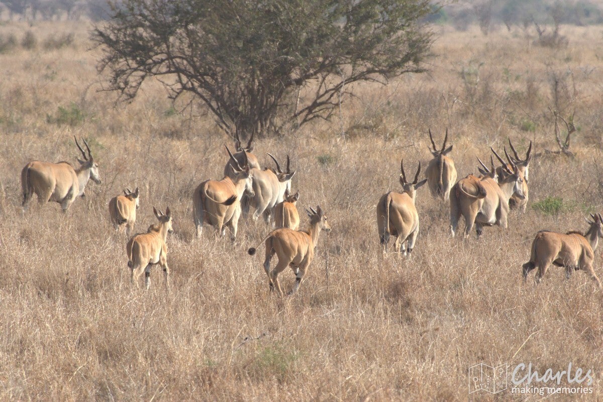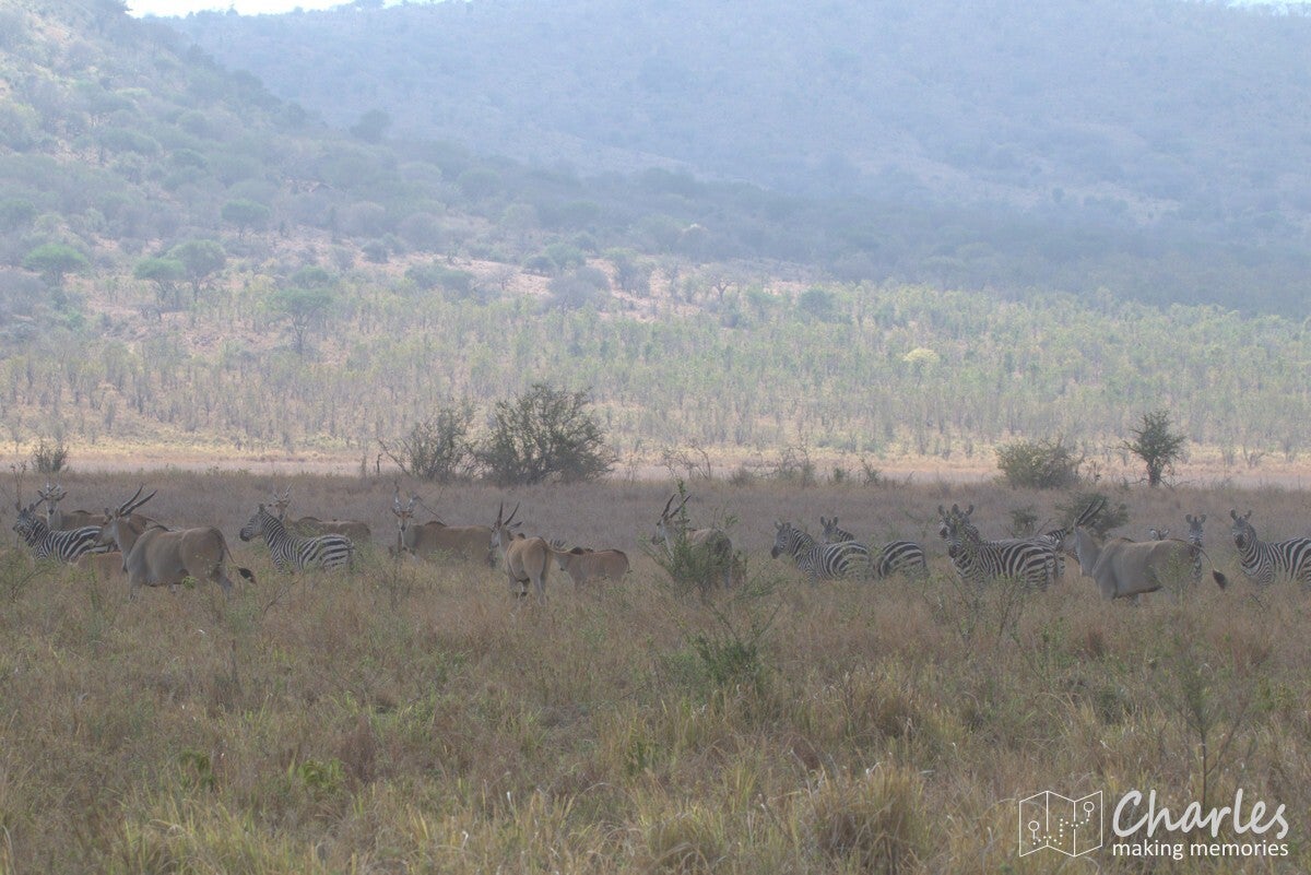 Het eerste deel van de gamedrive viel het nog niet zo op. Eerst door het afgebrande deel, waar alleen de gisteren genoemde vogels op zoek waren naar een simpel maaltje. Het stuk daarna door een wat meer bebost deel met vooral veel hoge struiken en ook bomen, waar toch ook al best wat (in kleine aantallen) konden zien. We waren vooral ook blij met de normaal toch heel schuwe dikdik. En toen kwam de open vlakte. Overal grote kuddes zebra's en elandantilopes. En zelfs giraffes in grote groepen, dat zie je normaal nooit. Het was echt om de gaverklap stoppen voor een mooie foto of om gewoon alles te bewonderen.