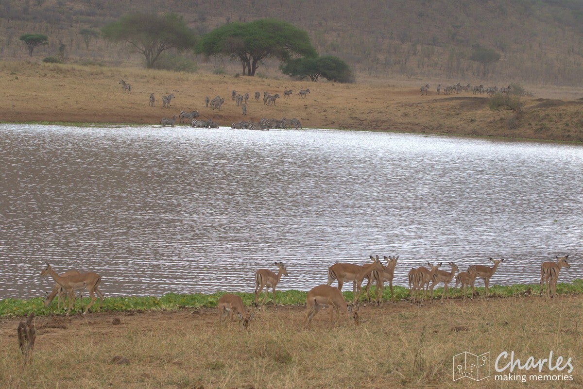 Bij het betreden van Mkomazi NP hadden we een 48 uurs-ticket aangeschaft. Even snel rekenen en we kwamen tot de conclusie dat we nog een hele ochtend hadden voor een laatste gamedrive. Wekker dus om kwart voor zes, snel aankleden en inpakken, ontbijt om half zeven en in de safari-jeep om zeven uur. We hadden zeker nog niet genoeg van dit park! En wat een mooie gamedrive zou het worden. Waar we dachten nog wat dieren te gaan zoeken, daar werd het een parade van gigantische kuddes met dieren. Mogelijk had het wat te maken met het wat meer bewolkte weer, maar overal liep de savanne vol met dieren. Fantastisch om mee te maken.