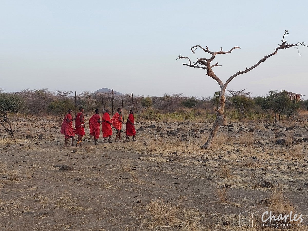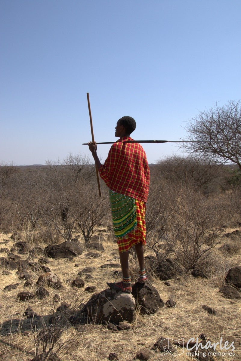 Eenmaal terug bij de lodge al snel de volgende activiteit: de speerwerpkampioenschappen. Er werden een stuk of zeven maasaikrijgers opgetrommeld om mee te doen. Met zware ijzeren speren moest een aan een boom gehangen houtblok worden geraakt. Ik heb niet het idee dat de leeuwen zich heel druk hoeven te maken, want het duurde even voordat er raak werd gegooid. Schijnbaar wordt er niet heel veel meer gejaagd, de maasai zijn vooral herders geworden. Uiteraard konden wij er absoluut niets van, onze pogingen leverden helemaal niets op. Blij dat we in Nederland een supermarkt hebben.