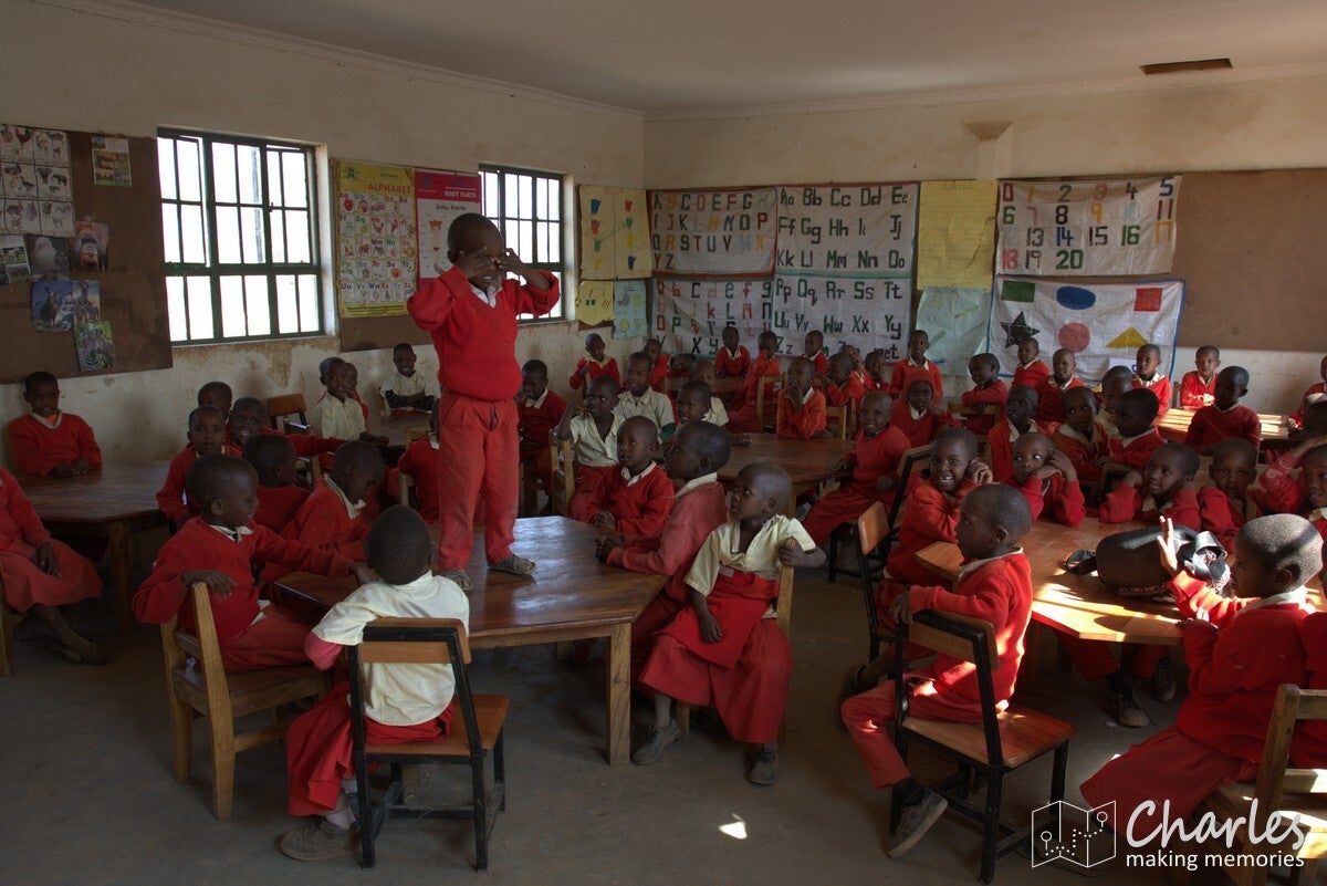 In de middag zoals gezegd een bezoek aan de school. Normaal een rit met een jeep, maar beide exemplaren waren niet beschikbaar of kapot. Wat ons betreft geen probleem om nog een stuk te lopen, het was ongeveer 20 minuten enkele reis. De school lag langs de grotere weg en besloeg een flink terrein. Onze komst was al doorgeseind, want bij aankomst stonden de ruim 600 kinderen en de leraren al buiten in rij en gelid op ons te wachten. De oudste kinderen verwelkomden ons al bij de poort met een speciale welkomstdans en zelfs speciale welkomstbordjes met onze namen er op. Daarna nog massaal gezang met de hele groep en een welkomstwoord van de hoofdleraar, gevolgd door een voorstelrondje van alle leraren. Hierna mochten wij ons voorstellen aan de hele school. Lessen zijn in het Engels, dus wij schatten in dat de kinderen het best konden volgen. Ook hier voelden we ons trouwens best opgelaten dat alle lessen van een hele school worden stilgelegd vanwege onze komst. We vonden het dus ook niet heel erg dat de kinderen op een gegeven moment weer terug mochten naar de klassen.