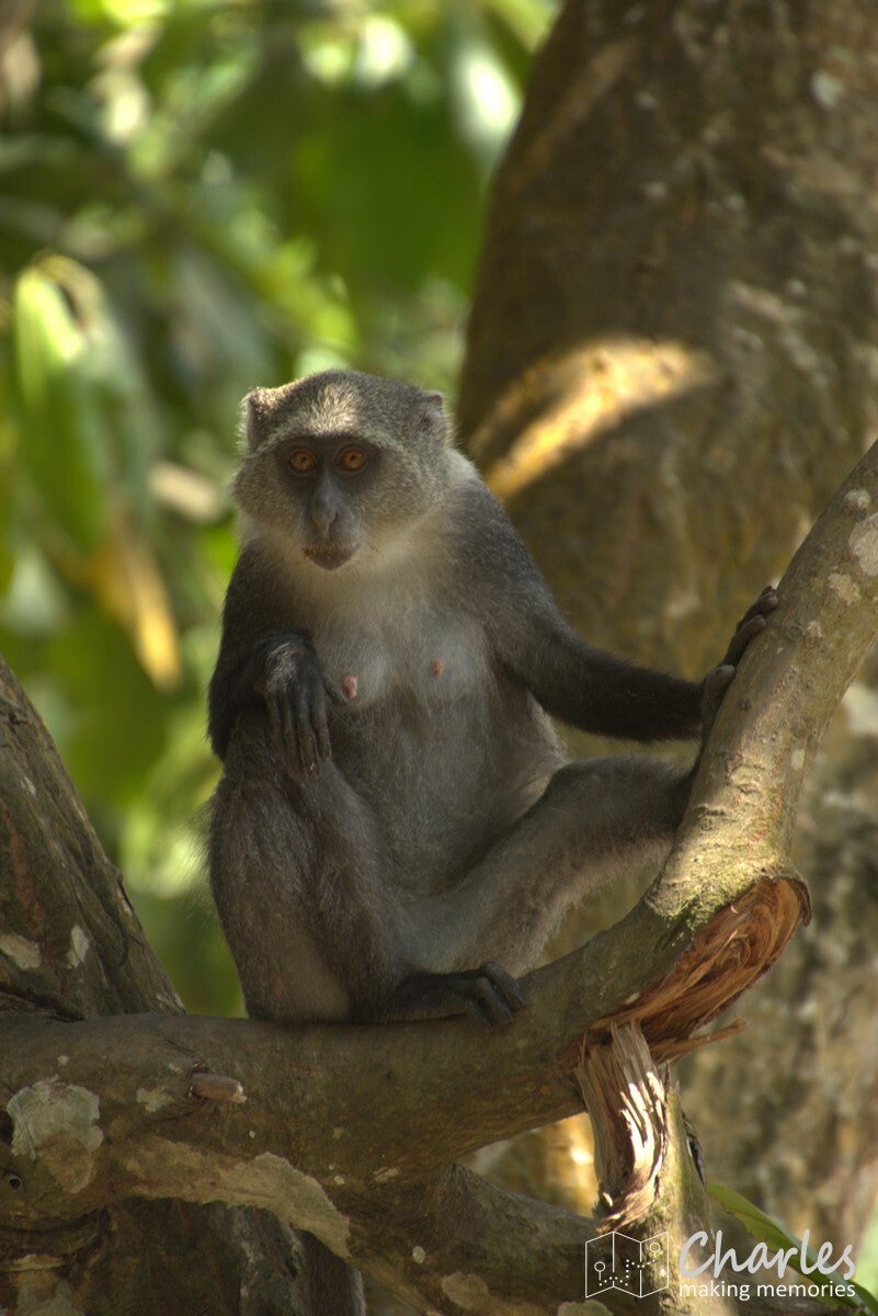 Na de lunch werden we opgepikt door een privéchauffeur. Jozani ligt niet ver weg, binnen een half uur waren we er wel. Daarna was het een kwestie van kaartjes en een gids regelen. Omdat we een georganiseerde tour hadden geboekt, was het aan de chauffeur om van loket naar loket te lopen (en dat een paar keer heen en weer). Ondertussen konden wij gewoon alvast genieten van het wild, want bij de ingang waren genoeg diadeemmeerkatten (blue monkey) te zien. Zij komen graag af op plekken waar veel mensen komen en vooral waar deze mensen eten achterlaten. Hadden we mooi gelijk de eerste apensoort weer afgevinkt, maar we kwamen vooral voor de tweede: de Zanzibarrodefranjeaap (Zanzibar red colobus monkey). Deze specifieke ondersoort van de rodefranjeaap is endemisch in Zanzibar, hij komt dus nergens anders voor. De apen hebben een opvallende rood-bruine, zwarte en witte vacht en een lange staart. Hopelijk zouden we ze vandaag kunnen gaan spotten.