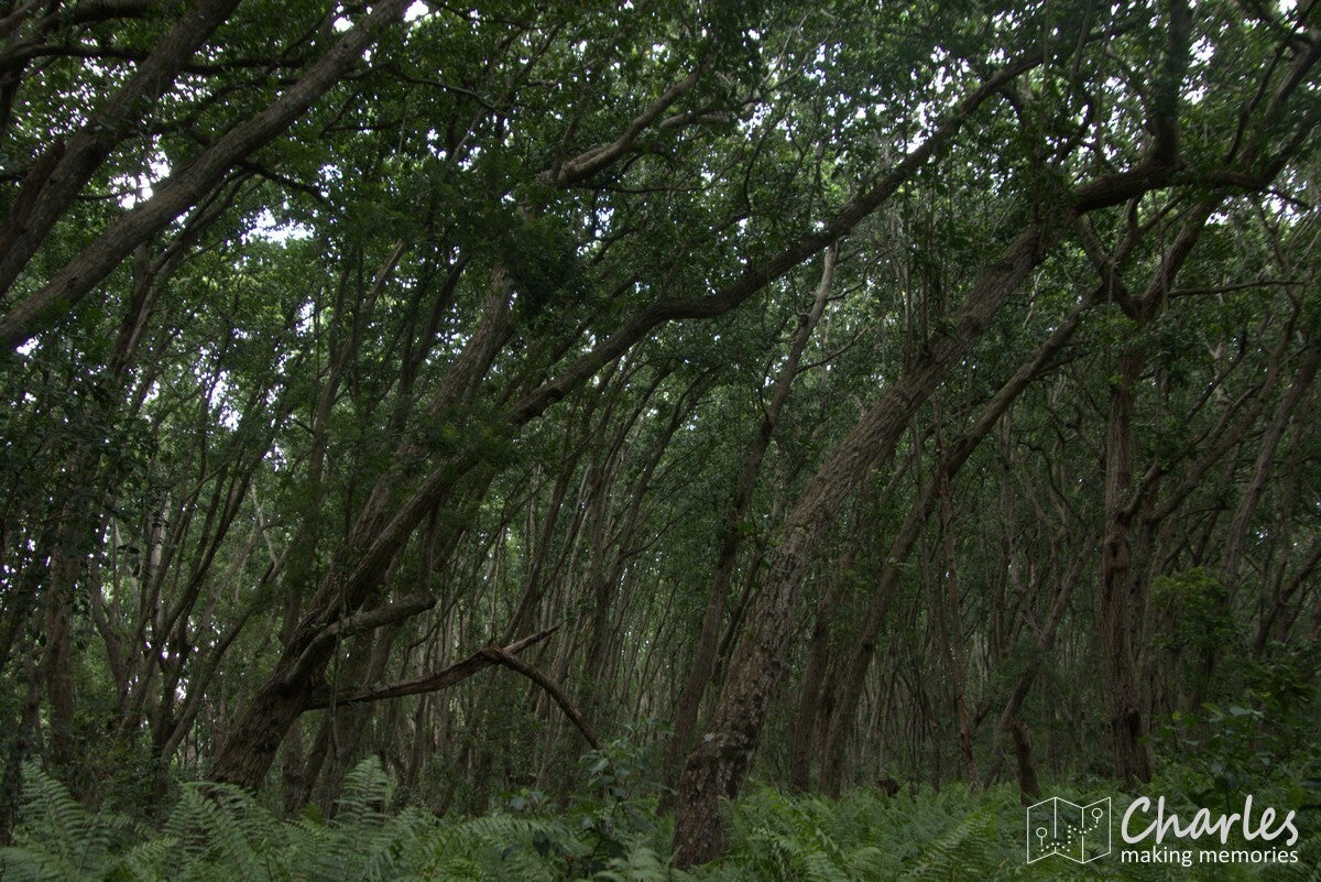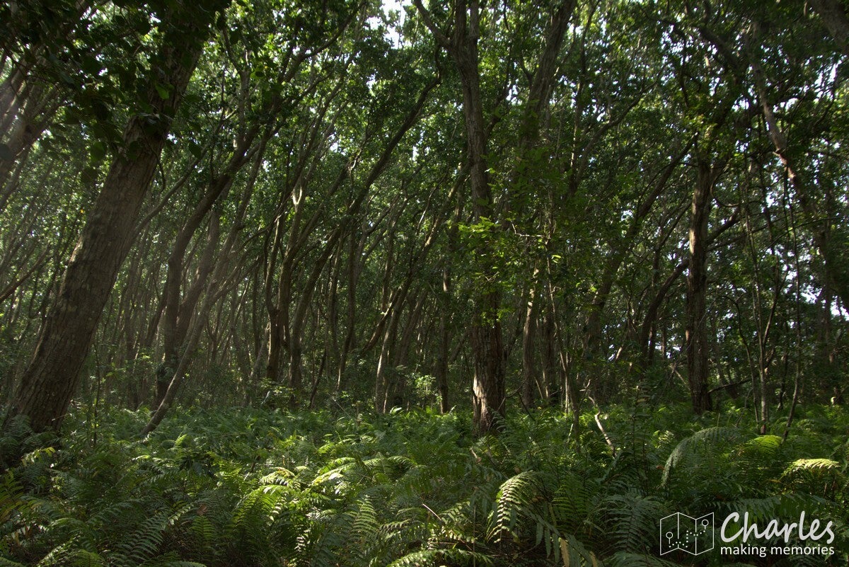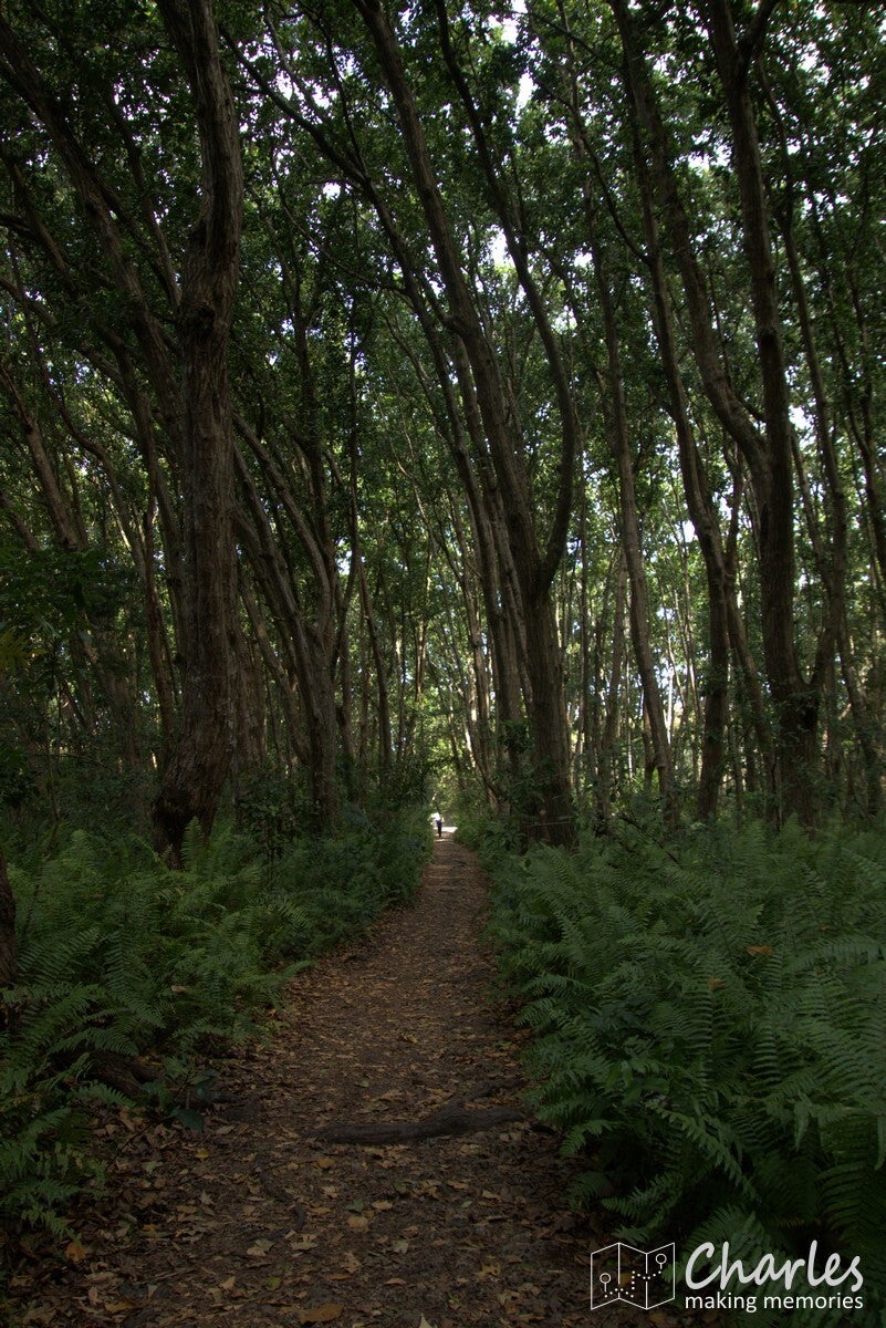 Na een tijdje was alles rond, we konden met een gids een bos in. Helaas geen eigen gids, maar er werd ook een Zuid-Afrikaanse familie aan het geheel gekoppeld. Kleine kinderen en wil spotten gaat meestal niet lekker samen, maar we zouden wel zien. Vanaf het entreegebouw liepen we een bos in. Prachtig hoge bomen met op de bosbodem een mooi deken van varens. Er werd veel uitgelegd over de bomen en planten, ondertussen waren wij uiteraard aandachtig aan het zoeken naar wild en dan vooral apen. Na een tijdje wandelen vertelde de gids dat we terug zouden gaan naar de ingang om vanaf daar een stukje met de auto te rijden en dan op zoek te gaan naar de apen. Dat had hij eerder mogen vertellen, dan hadden we het zoeken tot nu wel achterwege kunnen laten.