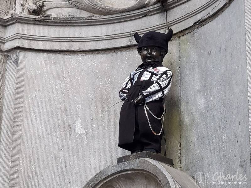 De laatste dag in Brussel. Gelukkig nog een ochtend en deel van de middag om nog wat leuks te doen. Allereerst voor een derde en laatste keer langs Manneken Pis. Op een of andere manier vinden ze het Brussel leuk om het beeldje steeds aan te kleden, maar daar zaten wij dus niet op te wachten. Wij wilden hem op de foto zoals iedereen hem kent: in zijn blote gat. Vandaag hadden we mazzel en hadden we dus eindelijk de gewenste foto. Verder op tijd nog even naar de Grote Markt in de hoop deze nog op de foto te kunnen zetten zonder massa's mensen. Een goede keus, het scheelde toch wel flink. Als laatste hadden we nog een rit met de foute bus bedacht, alleen dit keer richting de Europese Wijk om te zien waar de EU al dat geld aan verkwist. Allemaal kantoren van departementen waar ik nog nooit van had gehoord, het kan ook allemaal wat soberder wat mij betreft. De omgeving van de wijk en de rest van de tour was daarentegen weer prima, leuk om ook dat deel van Brussel eens te zien. Met de bustour kwam onze trip ten einde, tijd om de trein naar Nederland te pakken.