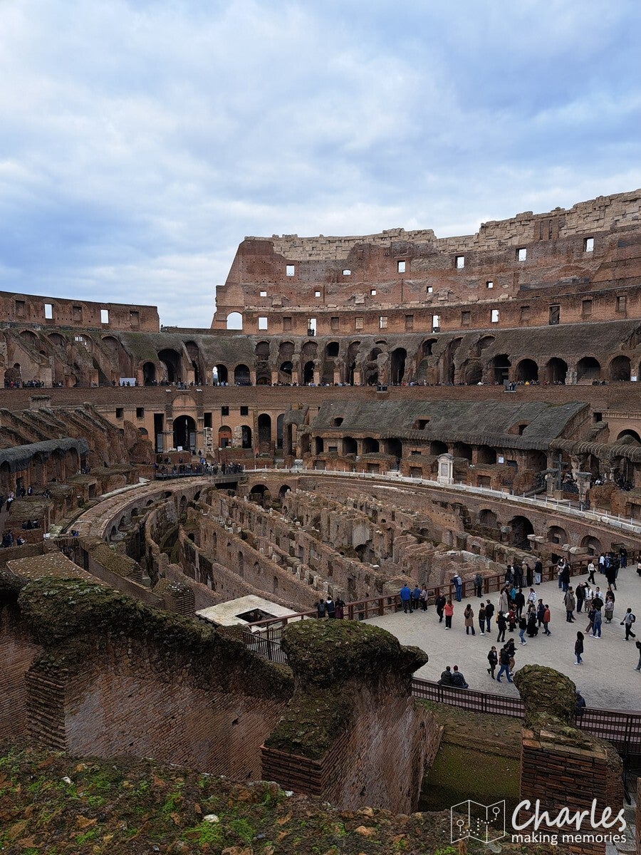 Zo rond 10 uur wilden we via de snelle rij het colosseum in, maar onze digitale tickets bleken meer een soort vouchers te zijn. We moesten dus eerst naar een kantoortje op ongeveer vijf minuten lopen om uitgeprinte tickets te halen. Gelukkig daar geen rij, dus we konden snel weer terug en dan toch naar binnen. Ondanks het laagseizoen nog steeds belachelijke drukte, blij dat we er niet in het voorjaar of de zomer waren. Ook nog eens omdat het nu echt heerlijk weer was, de perfecte temperatuur voor een stedentrip. Het colosseum was aan de binnenkant net zo indrukwekkend als van buiten, hoe bizar dat ze dit in die tijd hebben kunnen bouwen. Vooral de rondgang wat hoger in het colosseum gaf een mooi uitzicht. Zelf hebben we geen rondleiding in de catacomben gedaan, maar van boven kon je ook goed zien wat zich onder de vloer van de arena moet hebben afgespeeld. Aan de buitenkant had je ook mooi zicht op de Boog van Constantijn en iets verder weg het complex van de Foro Romano. Een bezoek daaraan moest nog even op zich laten wachten tot we onze tocht door het colosseum hadden afgerond. Misschien voor de hand liggend, maar dit bouwwerk is echt iets wat je moet bezoeken als je in Rome bent.