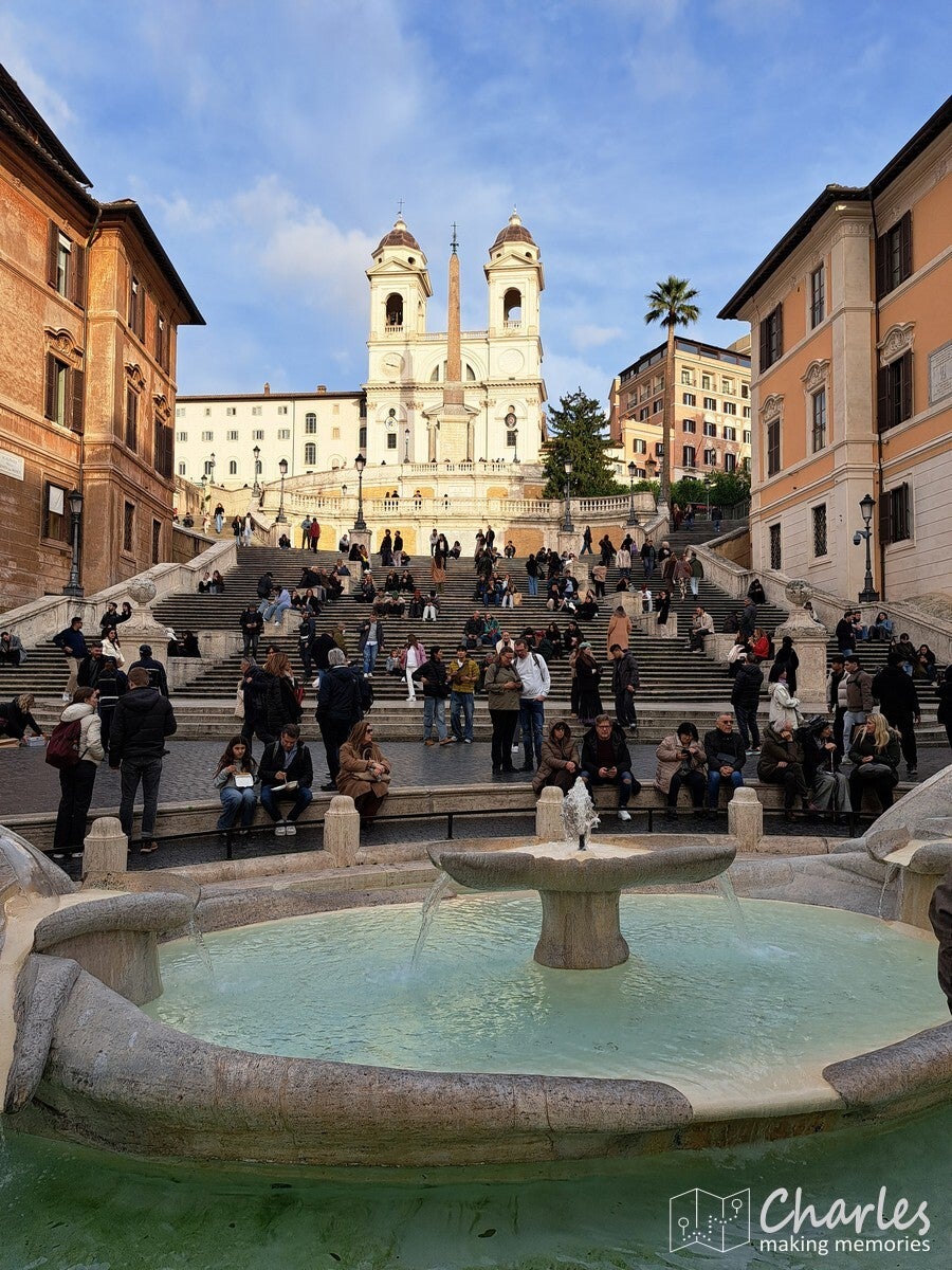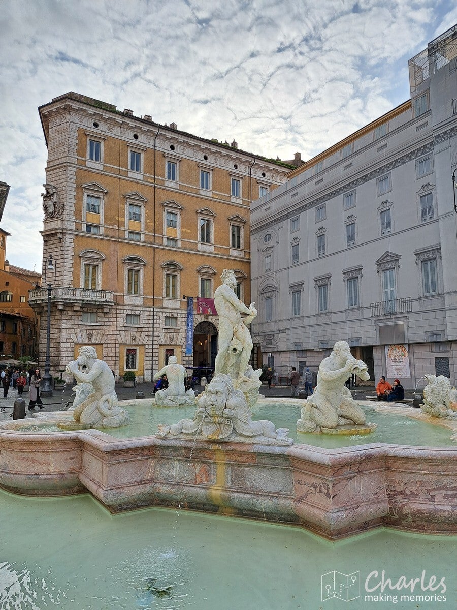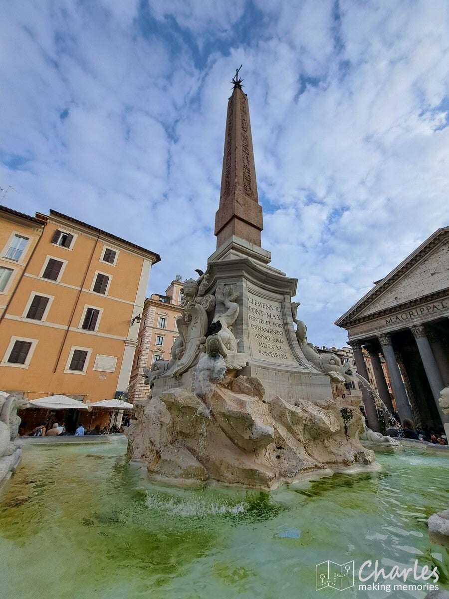 Na de lunch vast richting Pantheon, want ook daar moest nog een ticket worden omgewisseld. Dat ging rap, dus er was nog tijd over om naar het Piazza Navona te lopen. Op het langgerekte plein drie fonteinen, waarvan vooral de middelste wel erg mooi is. Daarna nog wat slenteren door wat straatjes om vervolgens net voor 15 uur terug te zijn. Via de snelle rij zonder te hoeven wachten het Pantheon in. Indrukwekkend om die gigantische koepel van binnen te zien. Verder moeilijk te beschrijven, bekijk daarvoor de foto's maar. Een bezoek aan het Pantheon duurt niet lang, dus we hadden nog wel wat tijd over om nog meer te doen. Dan ook nog maar doorlopen naar de Trevi-fontein. Erg mooi, maar wat belachelijk druk. Voor mij te veel van het goede, dus na een korte blik snel maar weer door. De Spaanse trappen dan maar proberen. Leuk om even te zien, al waren de trappen in de buurt van Braga in Portugal nog een stuk indrukwekkender. Met het laatste beetje puf voor de dag pakten we ook nog het Piazza de Popolo mee met in het midden een grote fontein met een obelisk en Egyptische stijl leeuwen. Van hier ging er een metro richting appartement, een perfect moment om af te taaien. Morgen weer een dag, vanavond gewoon een lekker diner om de hoek van het appartement.