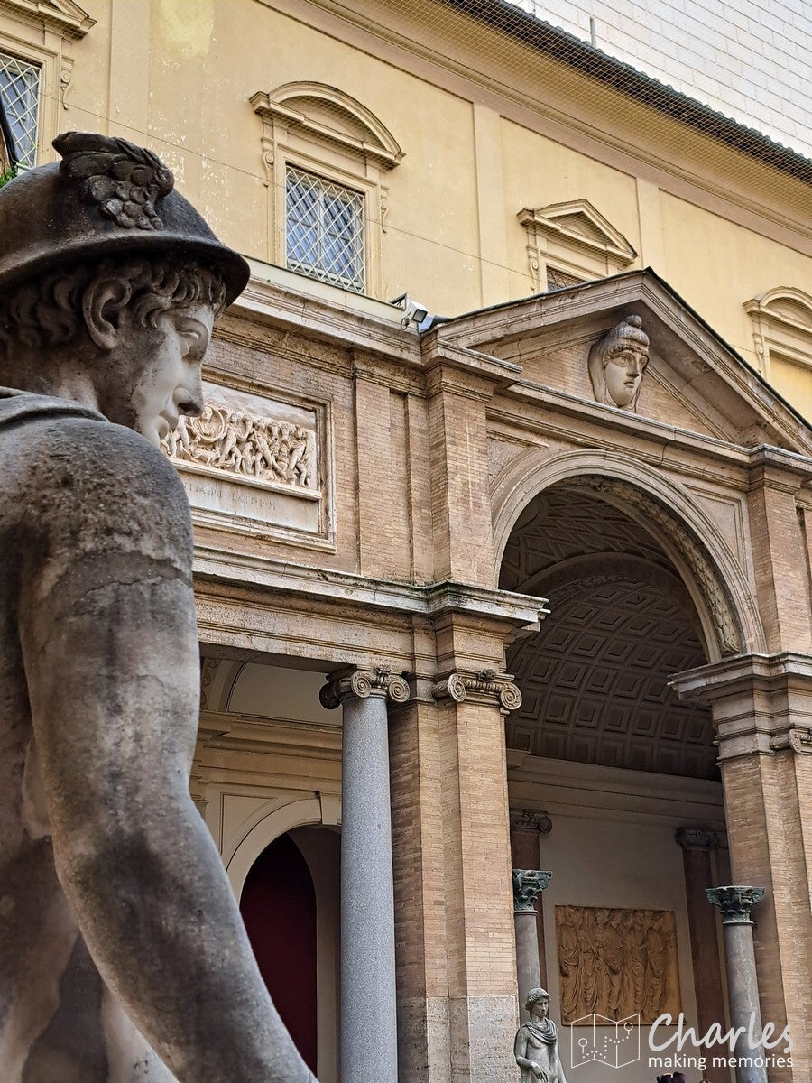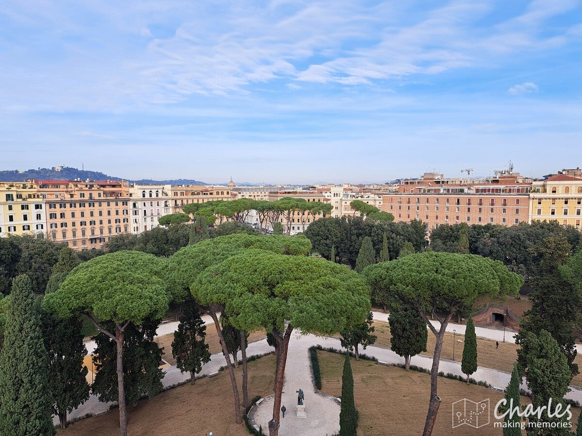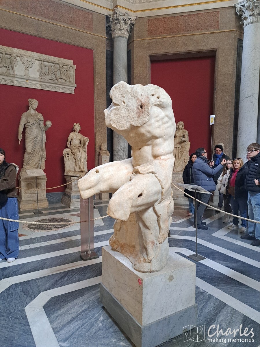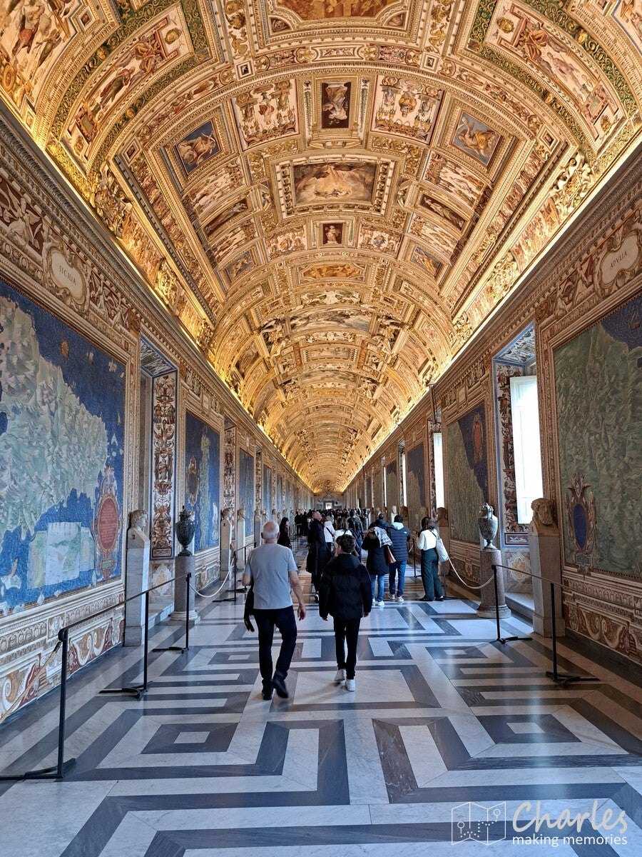 Vandaag tijd om nog even een ander land te bezoeken. Het kleinste land ter wereld, gelegen midden in Rome. Uiteraard gaat het dan om Vaticaanstad, de residentie van de paus en zijn gevolg. Ook voor het Vaticaans museum hadden we op voorhand al tickets geregeld, gelukkig hier geen noodzaak tot omwisselen ergens in de buurt van Vaticaanstad. In de ochtend op tijd richting metro, een directe lijn die uitkwam vlak bij Vaticaanstad. Uit de metro eerst nog maar op zoek naar een ontbijtje, we hadden ruim de tijd. Daarna op zoek naar de ingang van het museum, dat bleek een beetje aan de achterkant van Vaticaanstrad te zijn. Redelijk lange rijen waar we gewoon voorbij konden lopen, we hadden onze tickets tenslotte al. Echt binnen vijf minuten stonden we in het museum, dat was fijn. Bij de ingang kun je eerst nog even naar buiten, waar je kan uitkijken over de tuinen van het Vaticaan. Binnen een gigantisch museum, waarbij je een vaste route hebt vanwaar je ook een aantal zijroutes kan pakken. Deze komen steeds weer terug uit op de hoofdroute. Soms komt de route weer uit op een binnenplaats of binnentuin, maar over het algemeen zijn het lange gangen vol met beelden, schilderijen en wandtapijten. Een liefhebber kan zich hier makkelijk de hele dag vermaken, iemand als ik krijgt het vanzelf benauwd van de drukte en wil redelijk rap weer door. Pas bijna aan het einde van de hele hoofdroute, die steeds smaller en daarmee drukker wordt, kom je uit bij de ruimte die je echt gezien moet hebben: de Sixtijnse kapel. De wereldberoemde plafondschilderingen zijn een lust voor het oog, helaas heel veel bewaking om te voorkomen dat je er ook maar een vluchtig kiekje van maakt.