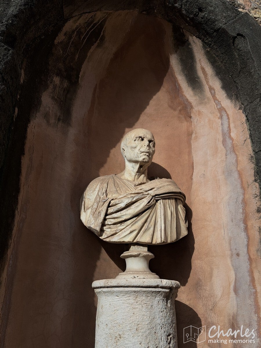 Het was inmiddels halverwege de middag en we hadden bedacht om op tijd terug naar het appartement te gaan, zodat we in de avond juist terug zouden komen naar het centrum om daar te eten en ook de sfeer in de avond nog te proeven. Op weg richting openbaar vervoer kwamen we echter zonder het gepland te hebben (en vanuit onze looprichting verscholen in straatjes en steegjes) langs het Teatro di Marcello. De onderste twee lagen van het theater zijn nog zichtbaar, er is alleen veel nieuws bovenop gebouwd. Eenmaal bij een drukke weg gingen we op zoek naar een bus- of metroverbinding. Genoeg bussen, maar slechte overstappen. Even rekenend kwamen we er op uit dat we toch beter naar het appartement konden gaan lopen. Langs het Forum Romanum en het Colosseum staken we weer binnendoor via het park waar we gisteren ook hadden gelopen. Na iets meer dan een half uur waren we terug in het appartement.