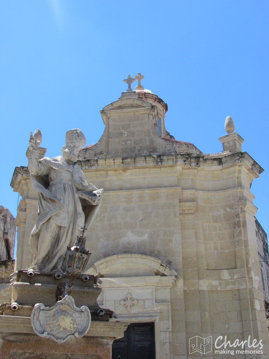 Na de toren een oversteek naar de zuidkust van het eiland. Met volle verbazing zagen we vanaf een klip ineens een soort piratendorp. Dat bleek Popeye Village te zijn. Een themapark, dus alles was volledig nep. Weg illusies van een piratendorp, maar het zag er wel leuk uit. Geen tijd om het park te bezoeken, dus geen idee of het park daadwerkelijk leuk is. Wij zetten in ieder geval verder koers langs de zuidkust in oostelijke richting. Hier en daar een stop bij een klif of een baai om te genieten van de uitzichten. Opvallend aan dit deel van het eiland was toch wel de relatieve rust. Geen files en aaneengesloten dorpen, maar vooral veel open landschappen. Naar het binnenland toe veel landbouw en wat kleine dorpjes, totdat we boven op een heuvel een oude vestingstad binnen hoge muren zagen. Deze stad heet Mdina en is de voormalige hoofdstad van Malta. Het ligt op het hoogste punt van het eiland en heeft als bijnaam The Silent City. En het doet deze bijnaam eer aan, in de smalle straten tussen de hoge honingkleurige gebouwen hangt een mysterieuze sfeer. Er is bijna geen autoverkeer in het ommuurde deel van deze stad, je moet dus alles lopend doen. Ideaal, want het brengt je altijd weer op verrassende plekjes. De meeste gebouwen stammen uit het begin van de achttiende eeuw, na een eerdere verwoestende aardbeving. Hoe dan ook bijna een open lucht museum, zeker een aanrader om deze stad te bezoeken als je op Malta bent. In dit stadje hebben we nog geluncht, waarna we nog een rondje langs de vestingmuren liepen vanwege het uitzicht over het eiland.