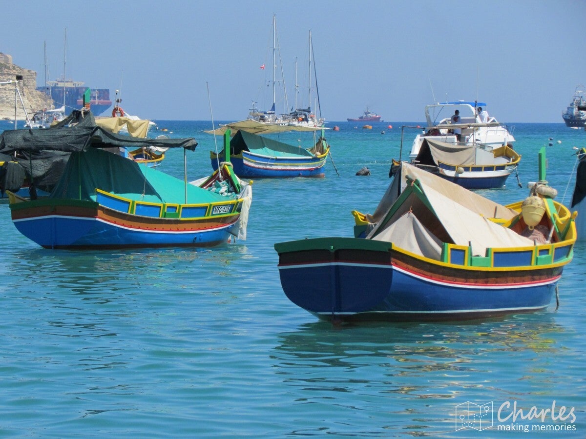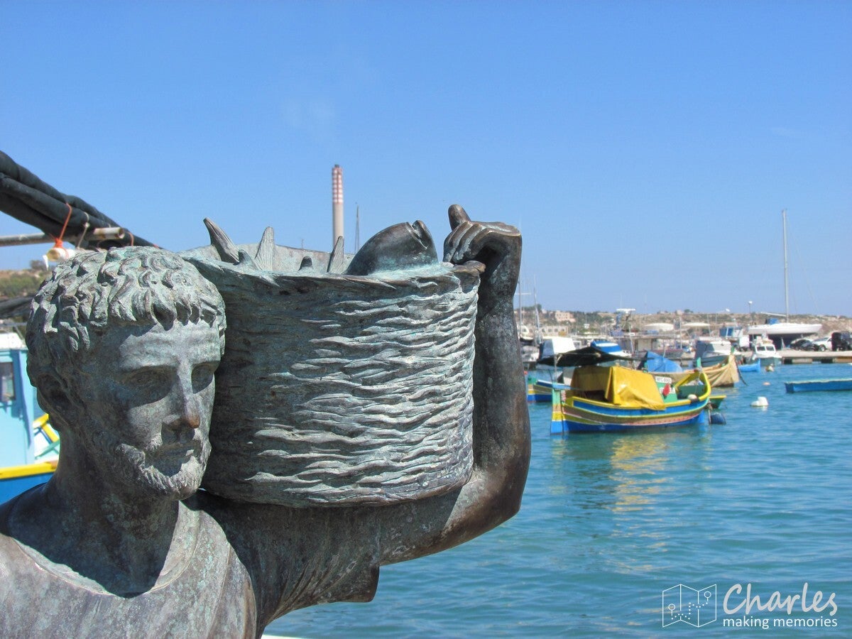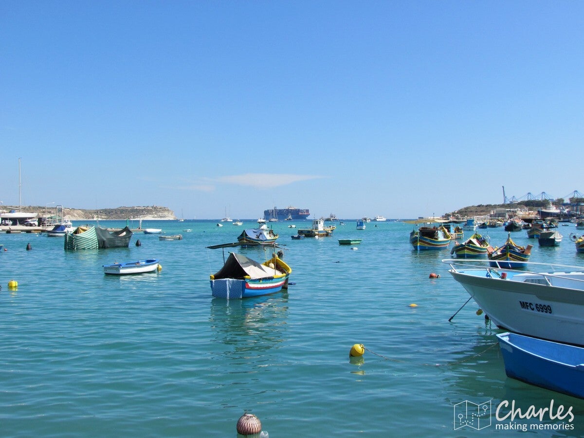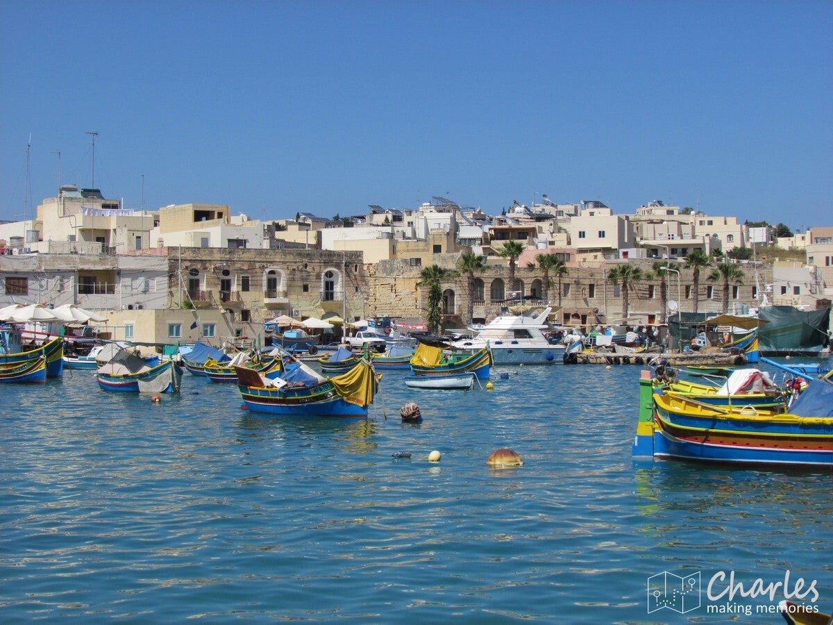 In de middag nog verder door in zuidoostelijke richting, naar de Blue Grotto. Ook hier weer een rotsboog in de Middellandse Zee, met (hoe verrassend) helderblauw water. Hier geen boottochtje naar de boog, maar gewoon een uitzicht op deze plek vanaf de kliffen. Nu nog naar een laatste bestemming, in het zuidoostelijke puntje van het eiland: het vissersdorp Marsaxlokk. In potentie is het in het oosten van Malta gelegen Marsaxlokk een topbestemming voor het toerisme. Het enige wat ontbreekt zijn mooie stranden in het dorp zelf. Mogelijk dat dit ervoor gezorgd heeft dat dit vissersdorp nog niet aangetast is door projectontwikkelaars. Eigenlijk bestaat het dorp uit een langgerekte vissershaven vol karakteristieke vissersbootjes. Deze bootjes zijn heel kleurrijk geverfd, wat het een vrolijk aanzicht maakt. De manier waarop de hoofdzakelijk kleine vissersbootjes verspreid door het water liggen maakt het een bont geheel, zeer fotogeniek. Je kan heerlijk over de (op sommige plaatsen wel smalle) kades lopen, waar bedrijvigheid rond bootjes en visserij worden afgewisseld met terrasjes. Even lekker een verkoelend drankje, terwijl je uitkijkt over de tientallen kleurrijke bootjes in het helderblauwe water.