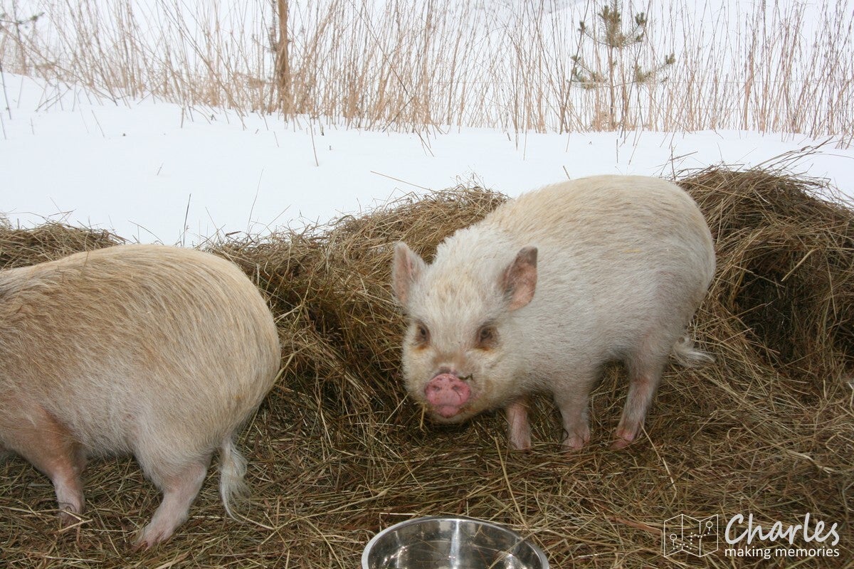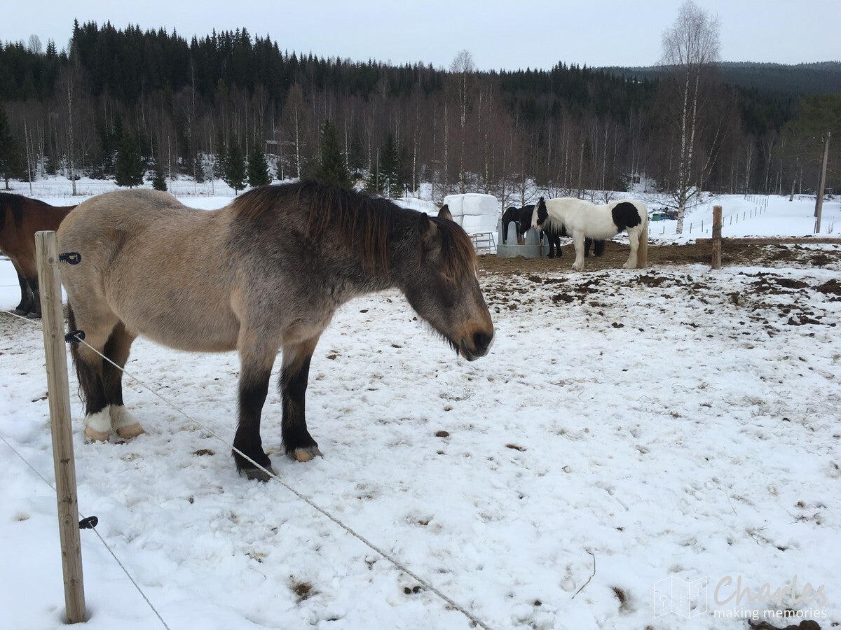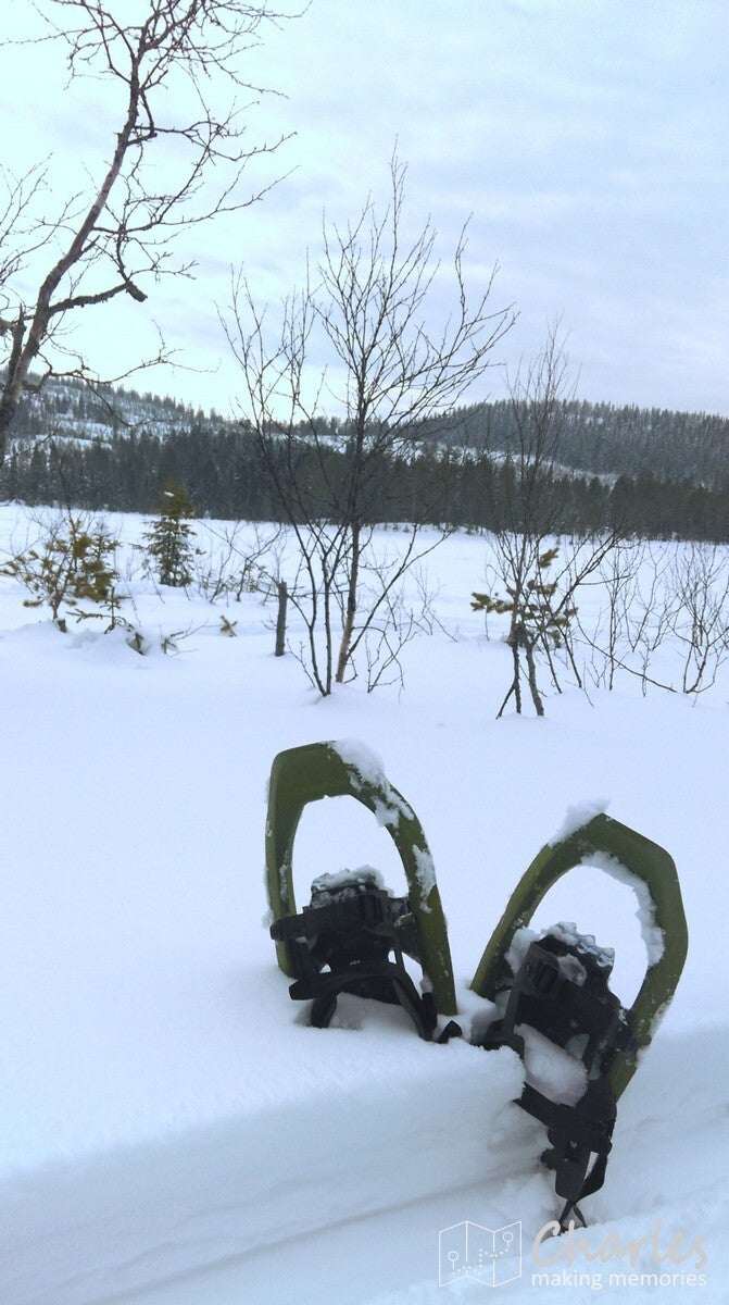 Zoals gezegd vandaag geen heel vol programma. Tijd genoeg dus om rustig op te staan en te ontbijten. Daarna alle tijd om een boek te lezen of in de woonkamer spelletjes te spelen. Maar uiteraard nodigt het witte landschap ook uit om buiten de boel verder te verkennen of de paarden en varkens op te zoeken en aaien. Pas later op de ochtend zouden we op pad gaan, er stond een wandeling in de omgeving op het programma. Goed warm aankleden dus en vervolgens kon iedereen sneeuwrackets (van die tennisrackets voor onder je voeten om door de dikke sneeuw te kunnen lopen) aanmeten, deze moesten ook mee. We waren benieuwd hoe zwaar het allemaal zou gaan worden.
