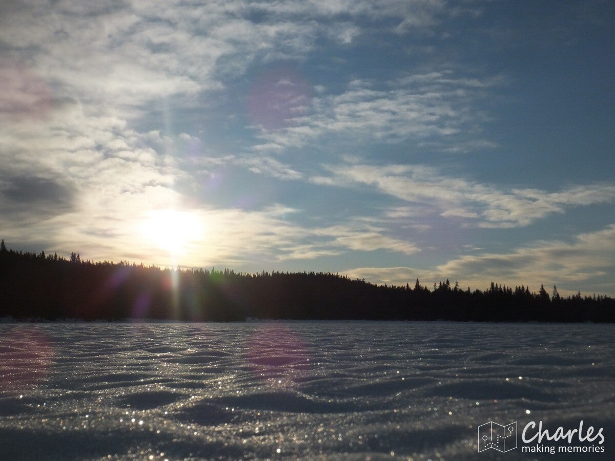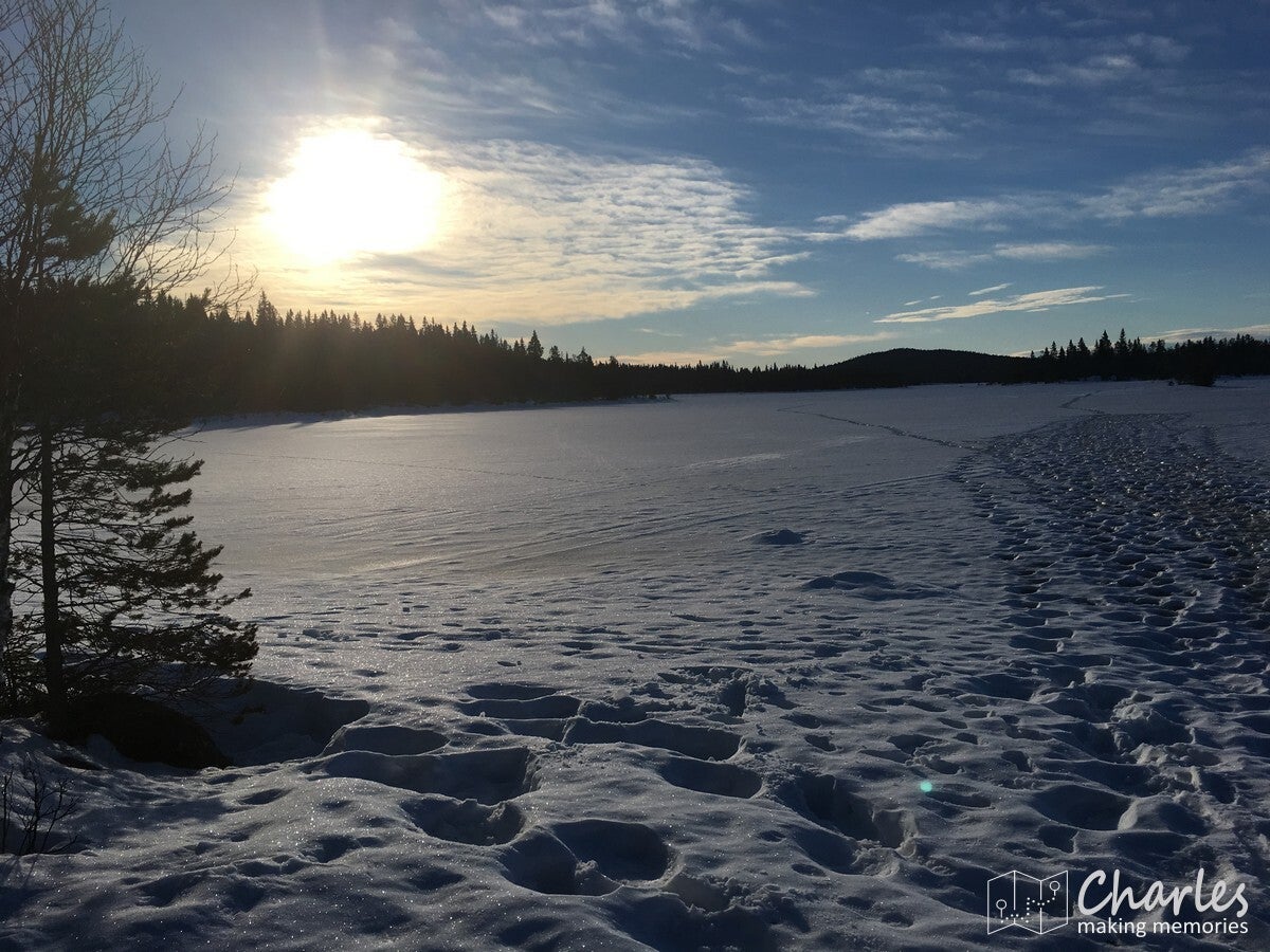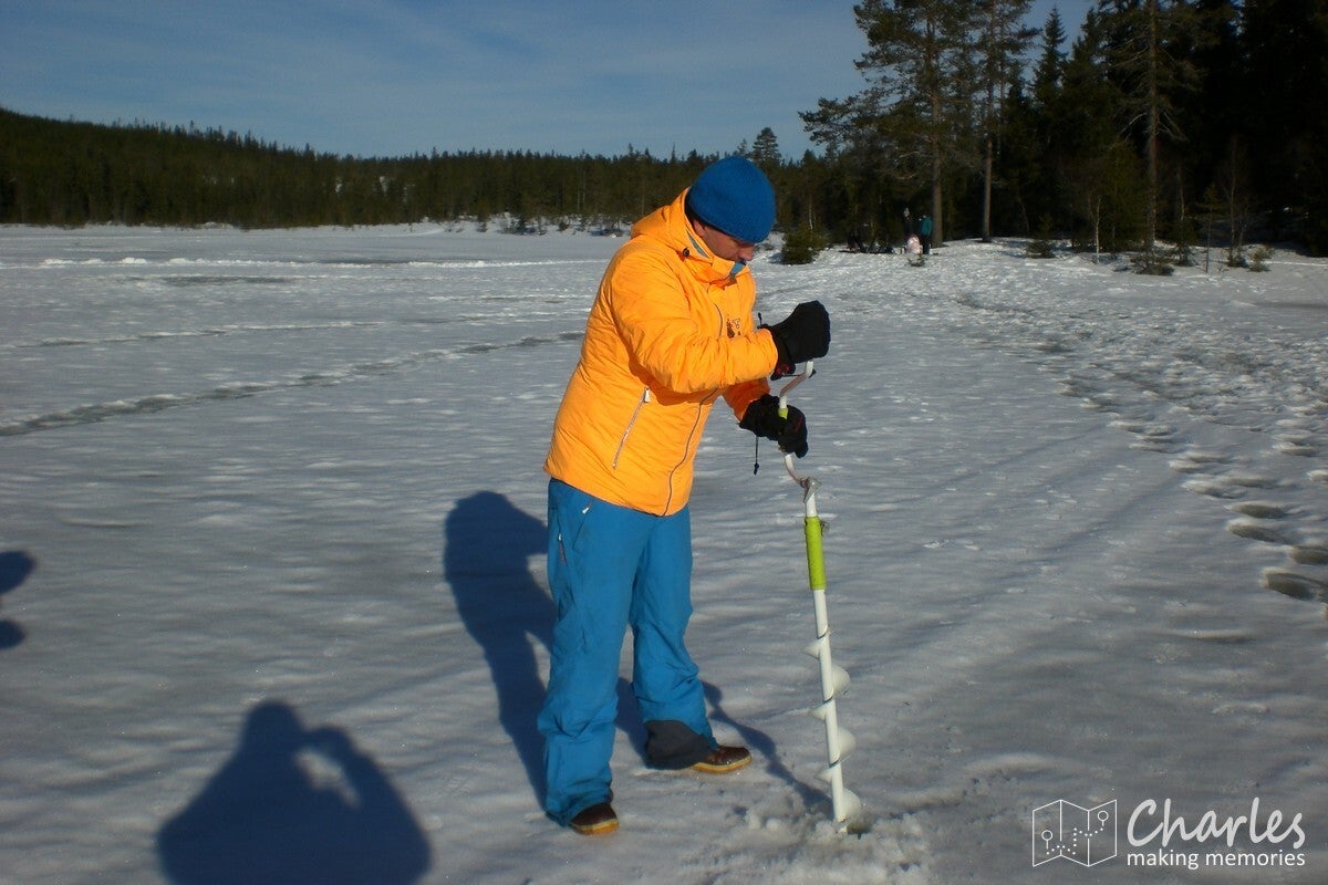 Na het ontbijt hadden we nog de nodige tijd bij het meer. Sommige gingen gewoon lekker bij het vuurtje zitten en anderen gingen nog een stuk lopen door de sneeuw. Met een klein groepje hadden we andere plannen: ijsvissen. Er was nog een recent geboord gat dat snel open was, maar dat vond ik toch wel te makkelijk. Samen met een reisgenote ging ik aan de slag met een handboor om een eigen gat te maken. Het goede nieuws: je krijgt het er lekker warm van, want het is erg hard werken. Het mindere nieuws: het kostte toch al gauw een uur om door de ijslaag van een meter dik heen te komen. Grote vreugde toen het dus eindelijk was gelukt. Nu nog wat zien te vangen. De benodigdheden kregen we van de gids: een krukje en een hengeltje. Resultaat na een uurtje vissen: helemaal niets. Schijnbaar lieten de vissen zich niet foppen door een paar herrie makende toeristen. Maar we hebben lol gehad en daar gaat het toch ook wel weer om.