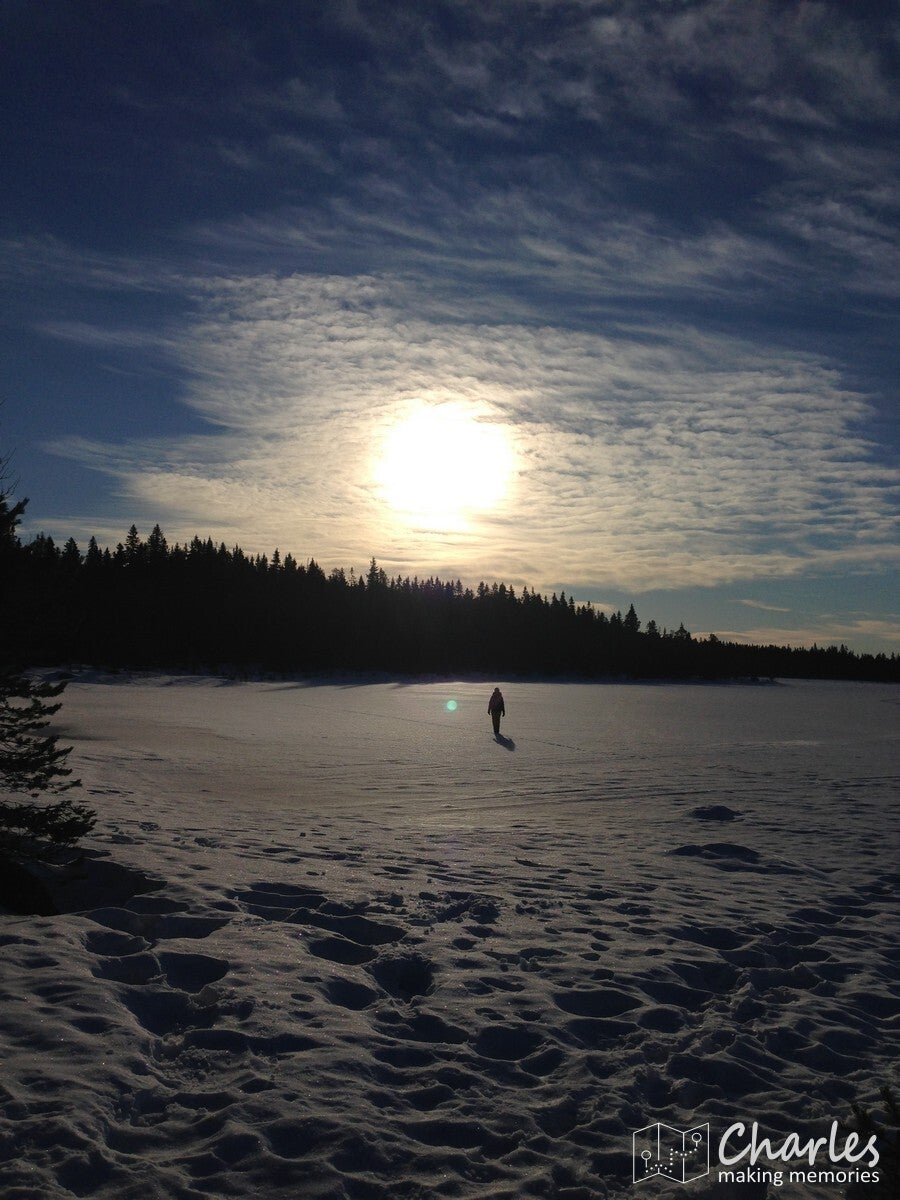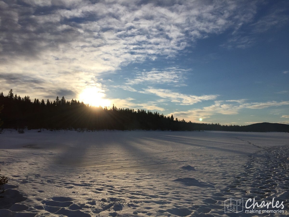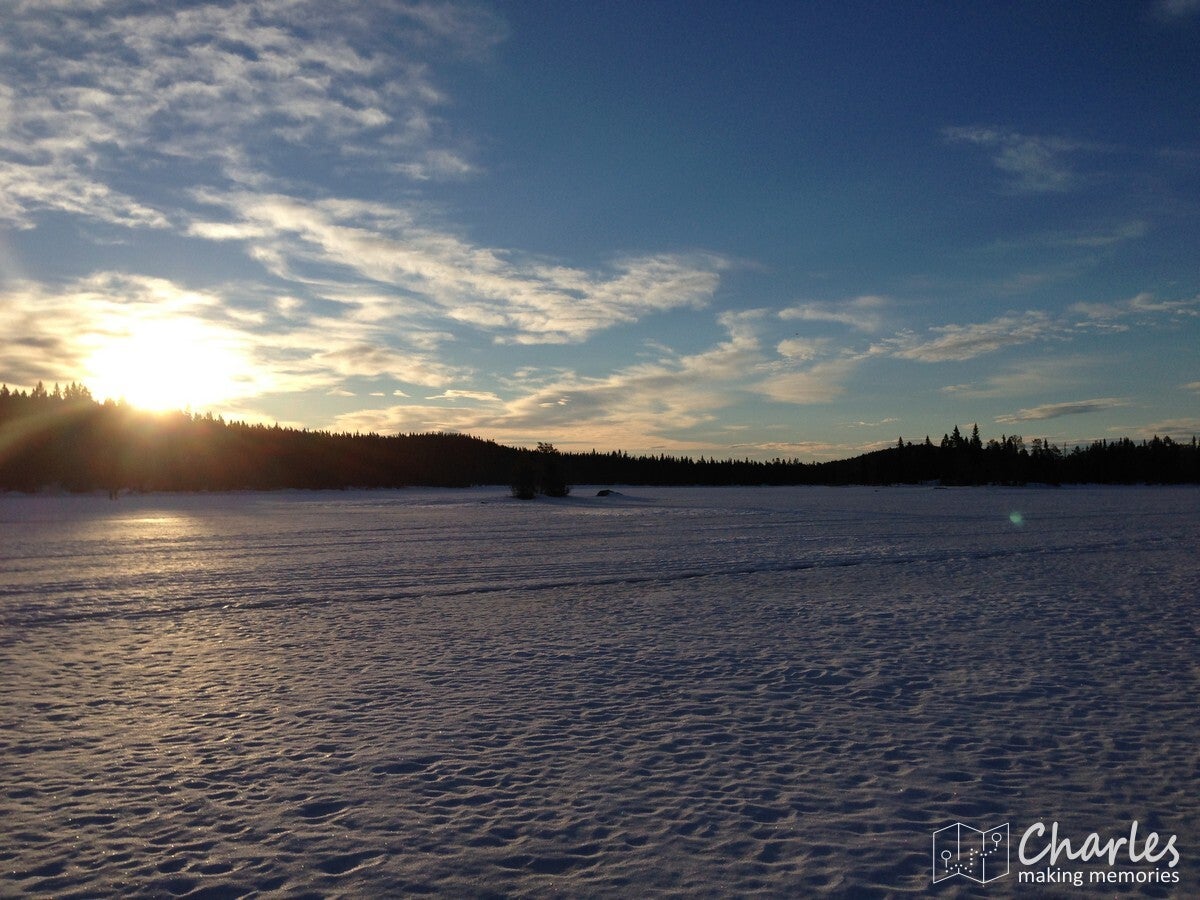 Na het ontbijt hadden we nog de nodige tijd bij het meer. Sommige gingen gewoon lekker bij het vuurtje zitten en anderen gingen nog een stuk lopen door de sneeuw. Met een klein groepje hadden we andere plannen: ijsvissen. Er was nog een recent geboord gat dat snel open was, maar dat vond ik toch wel te makkelijk. Samen met een reisgenote ging ik aan de slag met een handboor om een eigen gat te maken. Het goede nieuws: je krijgt het er lekker warm van, want het is erg hard werken. Het mindere nieuws: het kostte toch al gauw een uur om door de ijslaag van een meter dik heen te komen. Grote vreugde toen het dus eindelijk was gelukt. Nu nog wat zien te vangen. De benodigdheden kregen we van de gids: een krukje en een hengeltje. Resultaat na een uurtje vissen: helemaal niets. Schijnbaar lieten de vissen zich niet foppen door een paar herrie makende toeristen. Maar we hebben lol gehad en daar gaat het toch ook wel weer om.
