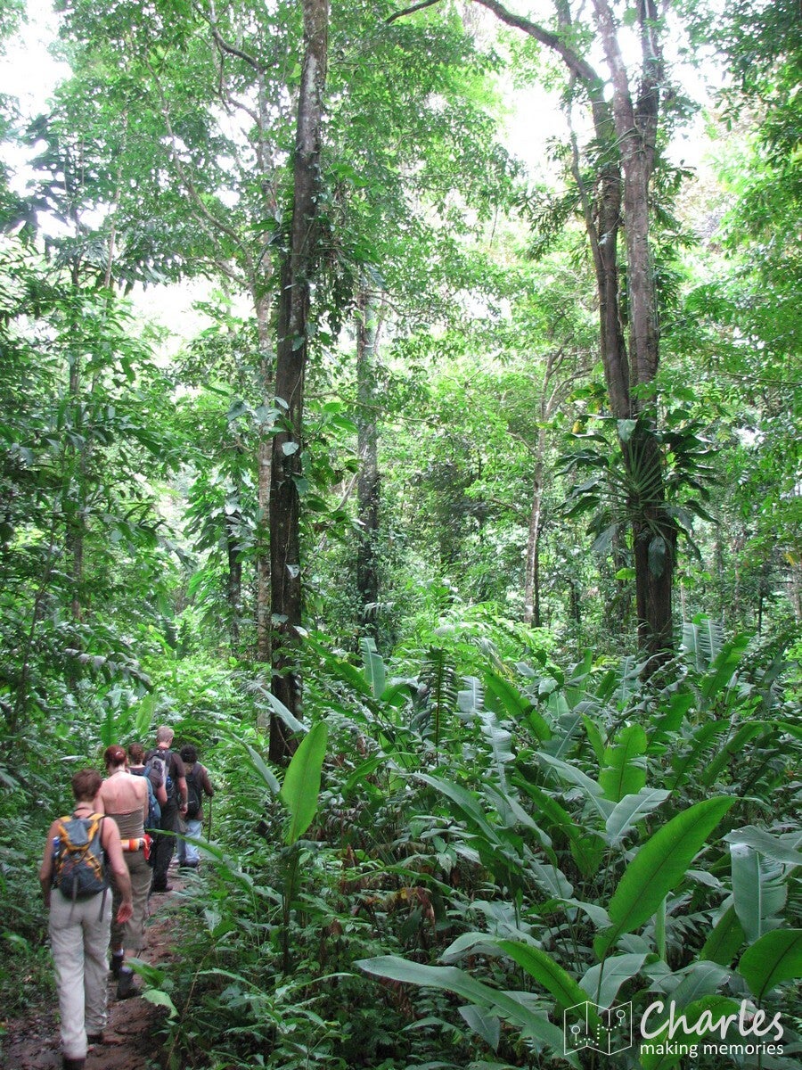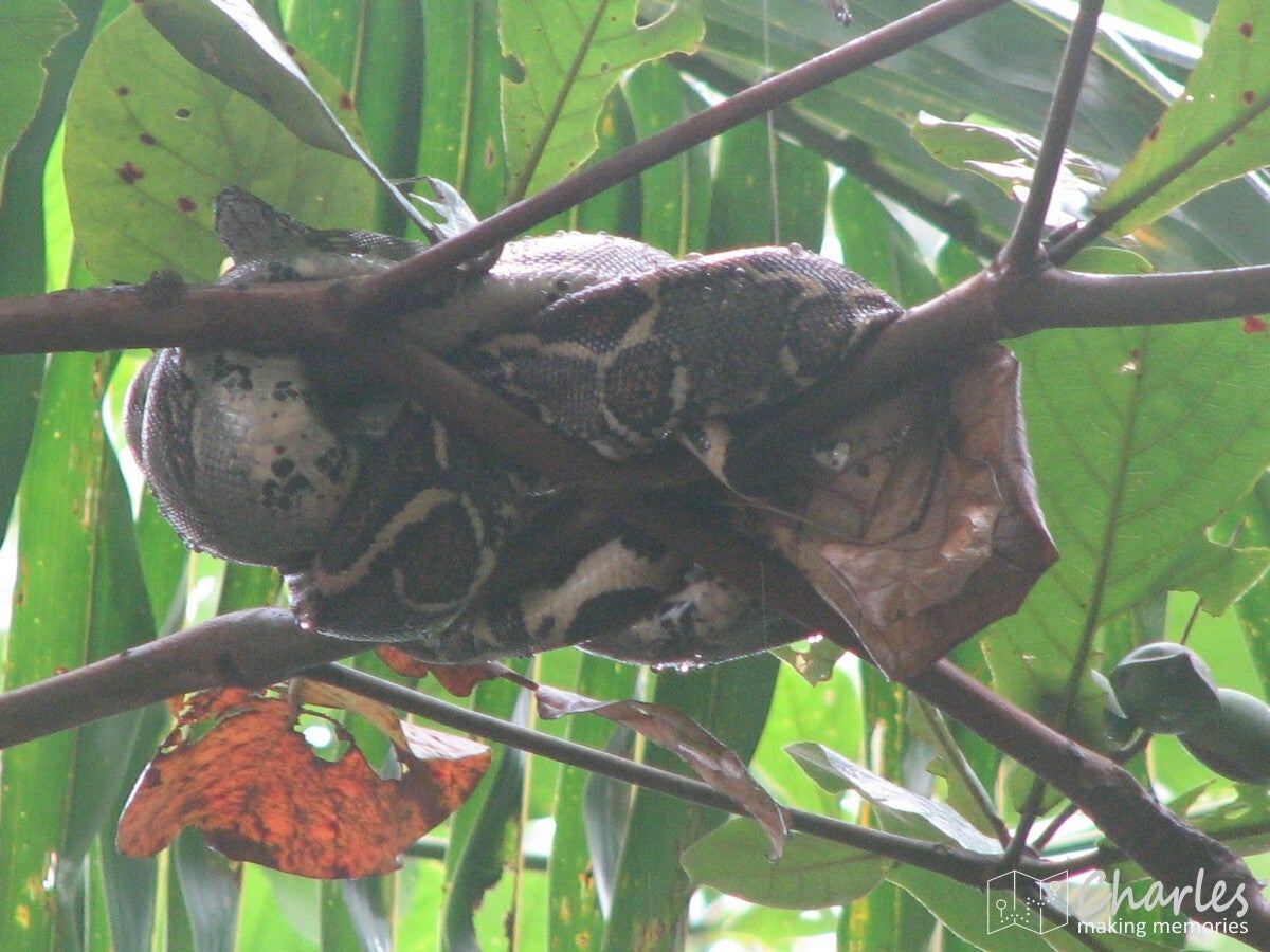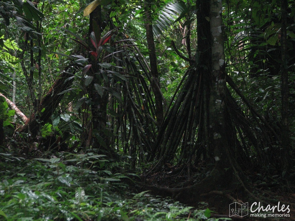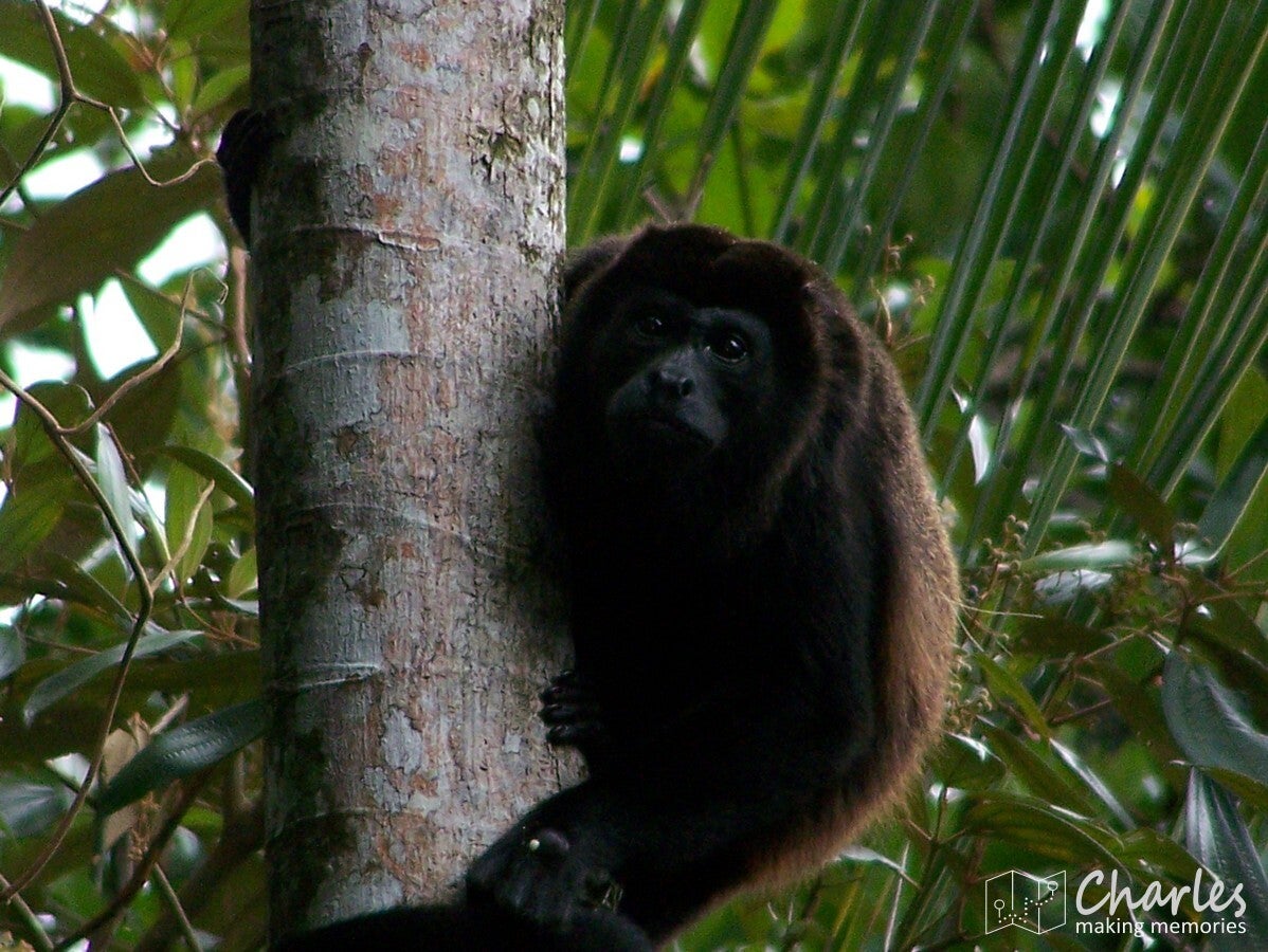 De tweede dag stond er nog wel wat actievers op het programma. Puerto Viejo ligt direct naast de tropische jungle van Finca pelon. Ondanks dat dit slechts een klein stuk bos is (op korte rijafstand zijn er grotere natuurparken te bezoeken), bleek er toch genoeg te zien. Via via was de befaamde Rasta Ricky als gids gecharterd, deze markante man wist ons iedere minuut van de wandeling te boeien. Vanuit het dorp liepen we richting het stuk natuur langs de Caribische Zee. Daar werd van alles verteld over de planten die er te vinden waren en ook alle dieren die werden gespot werden toegelicht. Een spannend moment was er ook, want toen we heuvelafwaarts om een omgevallen boomstam liepen, stonden we op korte afstand oog in oog met een gigantische Boa die half verscholen zat onder die boomstam. Gelukkig was ik niet degene met de rode jas, dus zijn aandacht lag in ieder geval niet bij mij. Helaas geen foto van deze prachtige slang, want vanwege de regen was net de fotocamera opgeborgen. Andere echte bijzonderheid bij de wandeling waren de brulapen die zich al van verre lieten horen. Wist ik ook gelijk van welk geluid ik die ochtend wakker was geworden. Rasta Ricky deed nog wat extra moeite om een luiaard voor ons te vinden, uit beleefdheid maar niet verteld dat er in de ochtend een luiaard aan een tak vlak voor mijn hutje hing. Al met al een geslaagde wandeling door het bos, ook in een klein stuk is al heel veel te zien.