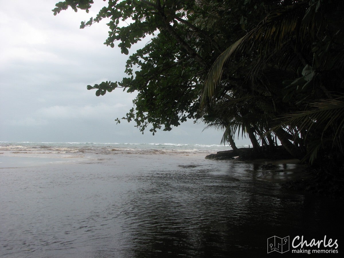 Costa Rica is een relatief klein land, gelegen tussen de Caribische Zee aan de noordkant en de Stille Oceaan aan de zuidkant. Een rondreis door dit land kan dan ook niet zonder ook de kustgebieden te bezoeken. Na het natte bezoek aan (de omgeving van) de Arenal werd dan ook koers gezet naar ongeveer het meest oostelijke puntje van Costa Rica, aan de Caribische kust. Daar zou een paar dagen worden verbleven in het kustdorpje Puerto Viejo de Talamanca (ook wel kortweg Puerto Viejo genoemd). Het dorpje is bekend om de relaxte Caribische vibes, er komen dan ook veel surfers. Goede eettentjes, Reggae-muziek en een mooi strand: een ideale locatie om bij te komen van de inspanningen van de vorige dagen. De eerste dag was er een van lekker niks doen op het strand. De plannen om een keer te gaan proberen surfen konden namelijk ook al direct de prullenbak in: golven tot 5 meter hoog en dus een rode vlag. Zelfs de meeste ervaren surfers konden niet op pad, veel te gevaarlijk. Op het strand bleek het goed vertoeven, al werd deze steeds kleiner en kleiner toen eb langzamerhand veranderde naar vloed. De golven kwamen steeds verder op het strand, totdat er aan het einde van de middag eigenlijk geen strand meer over was. Dan maar verkassen naar de hangmat bij het eigen hutje, ook geen straf.